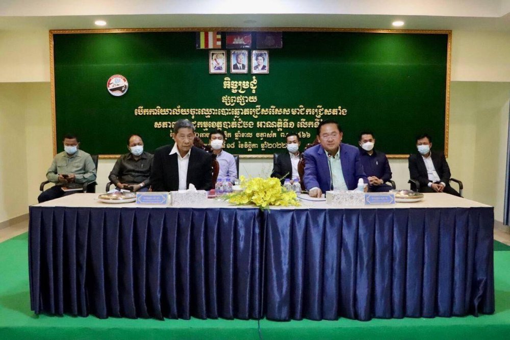 (បាត់ដំបង): រសៀលថ្ងៃសុក្រ ១០រោច ខែកត្តិក ឆ្នាំខាល ចត្វាស័ក ព.ស ២៥៦៦ ត្រូវនឹងថ្ងៃទី១៨ ខែវិច្ឆិកា ឆ្នាំ២០២២ នៅមន្ទីពាណិជ្ជកម្មខេត្តមានបើកកិច្ចប្រជុំផ្សព្វផ្សាយបើកការិយាល័យចុះឈ្មោះបោះឆ្នោតជ្រើសរើសសមាជិកតាំង សភាពាណិជ្ជកម្មខេត្តបាត់ដំបង អាណត្តិទី១ លើកទី២ ក្រោមអធិបតីភាព ឯកឧត្តម ម៉ៅ ថូរ៉ា រដ្ឋលេខាធិការក្រសួងពាណិជ្ជកម្ម ឯកឧត្តម សុខ លូ អភិបាលនៃគណះអភិបាលខេត្តបាត់ដំបង ក្នុងកិច្ចប្រជុំនេះក៏មានការអញ្ជើញចូលរួមពីប្រធានមន្ទី ឧកញ៉ា ភួ វាសនា អនុប្រធានសភាពាណិជ្ជកម្មកម្ពុជា និងជាប្រធានសភាពាណិជ្ជកម្មខេត្តបាត់ដំបង ព្រមទាំងសមាជិក សមាជិកា គណៈកម្មកា និងមន្ត្រីពាក់ព័ន្ធនៃមន្ទីពាណិជ្ជកម្មខេត្តផងដែរ ។