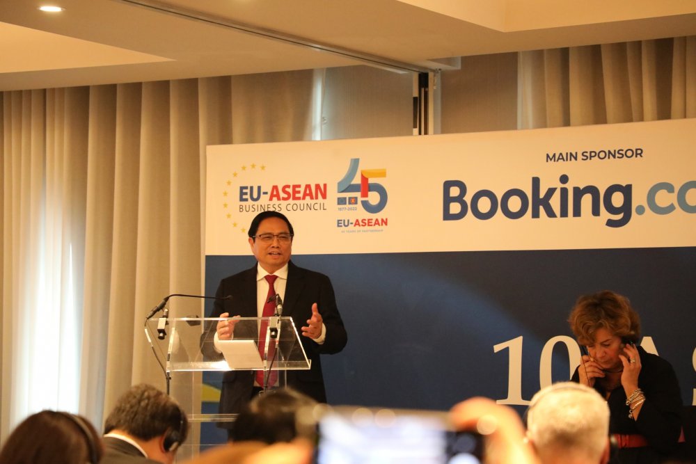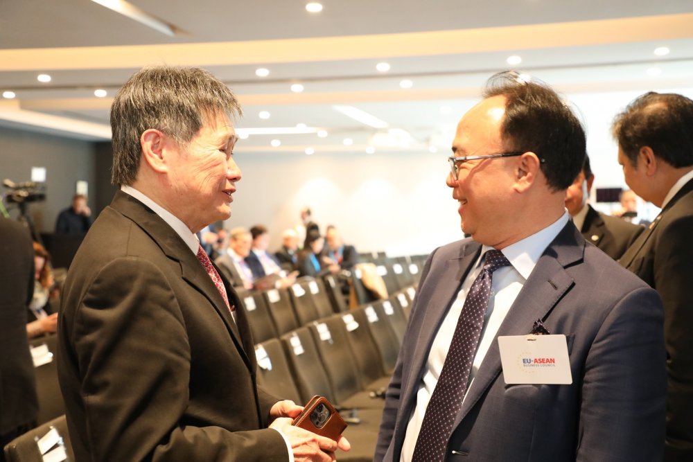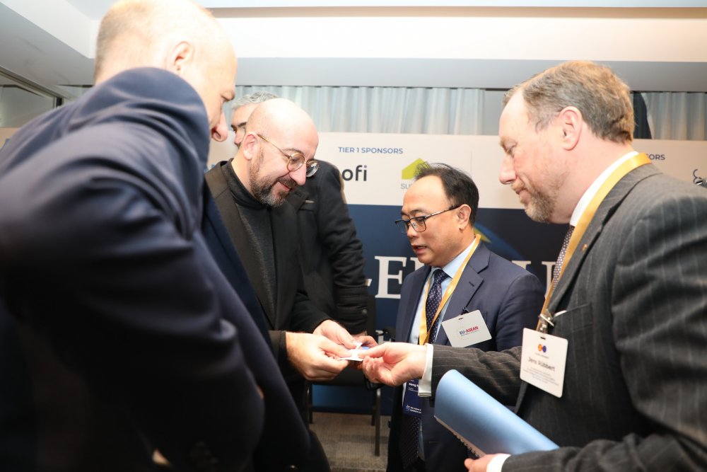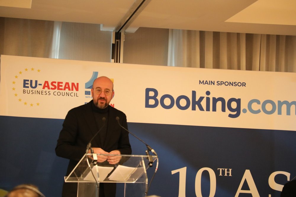 លោក ឆាល មីឆែល (Charles Michel) ប្រធានក្រុមប្រឹក្សាសហភាពអឺរ៉ុប បានថ្លែងកោតសរសើរទំនាក់ទំនងសេដ្ឋកិច្ចពាណិជ្ជកម្ម រវាងអឺរ៉ុប និងអាស៊ានដែលមានការរីកចម្រើន ជាពិសេសលោកក៏បានសង្កេតឃើញកិច្ចព្រមព្រៀមពាណិជ្ជកម្មសេរីរវាងបណ្តាប្រទេសអាស៊ាន និងអឺរ៉ុប កាន់តែច្រើនឡើងជាលំដាប់ ។ លោកក៏បានបន្តថា ការរៀបចំវេទិកានៅពេលនេះបង្ហាញពីជំនឿទៅវិញទៅមករវាងធុរជនអាស៊ាន និងអឺរ៉ុប។ ជាមួយគ្នានេះលោកក៏បានប្ដេជ្ញាចិត្តថា នឹងជំរុញទំនាក់ទំនងឲ្យកាន់តែប្រសើរឡើងមួយកម្រិតថែមទៀត ជាពិសេស ផ្ដោតទៅលើវិស័យឌីជីថល ការតភ្ជាប់ទំនាក់ទំនងគ្នា ការអភិវឌ្ឍប្រកបដោយចិរភាព វិស័យសន្តិសុខ ការប្រែប្រួលអាកាសធាតុ។ល។
