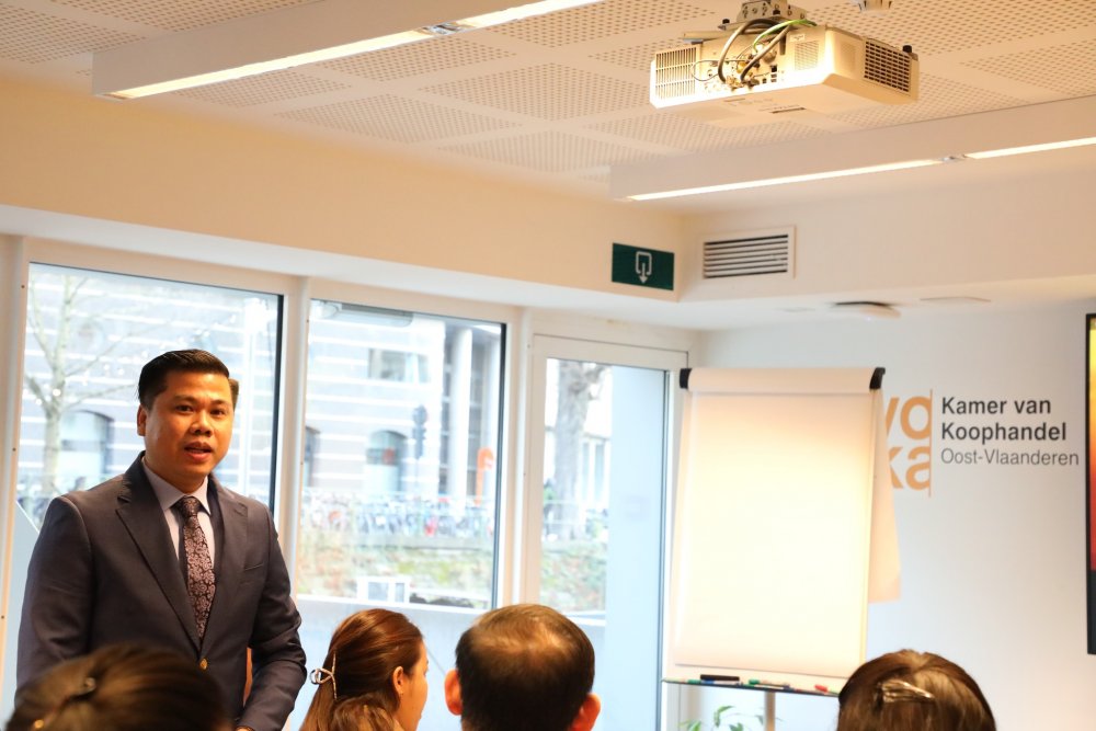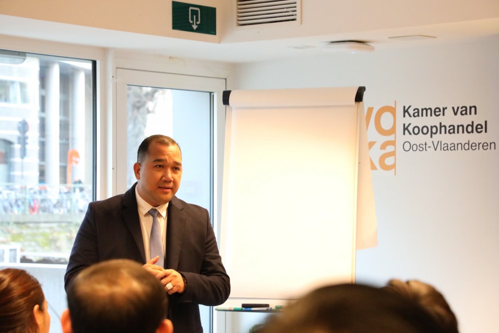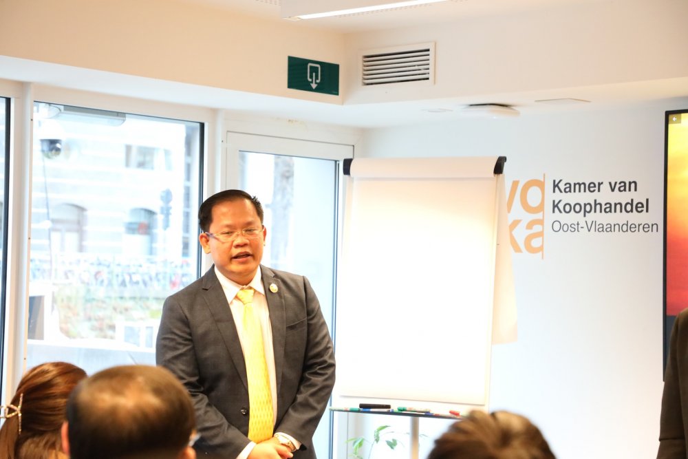 លោក ហ្គើត មឿនម៉ាន (Geert Moerman, CEO) ប្រធាននាយកប្រតិបត្តិសភាពាណិជ្ជកម្មនិងឧស្សាហកម្មផ្លេនឌើ បានទទួលស្វាគមន៍យ៉ាងកក់ក្តៅចំពោះដំណើរទស្សនកិច្ចរបស់គណៈប្រតិភូសភាពាណិជ្ជកម្មកម្ពុជា និងបានជម្រាបជូនអំពីទិដ្ឋភាពទូទៅនៃសេដ្ឋកិច្ចនិងធុរកិច្ចប្រទេសបែលហ្ស៊ីក ជាពិសេសវិស័យសក្តានុពលដែលធុរជនប្រទេសទាំងពីរគួរពិចារណាវិនិយោគ។ ក្រៅពីនេះ លោកក៏បានចែករំលែកបទពិសោធន៍នៃការអនុវត្តគម្រោង និងដំណើរការរបស់សភាពាណិជ្ជកម្មនិងឧស្សាហកម្មផ្លេនឌើផងដែរ។