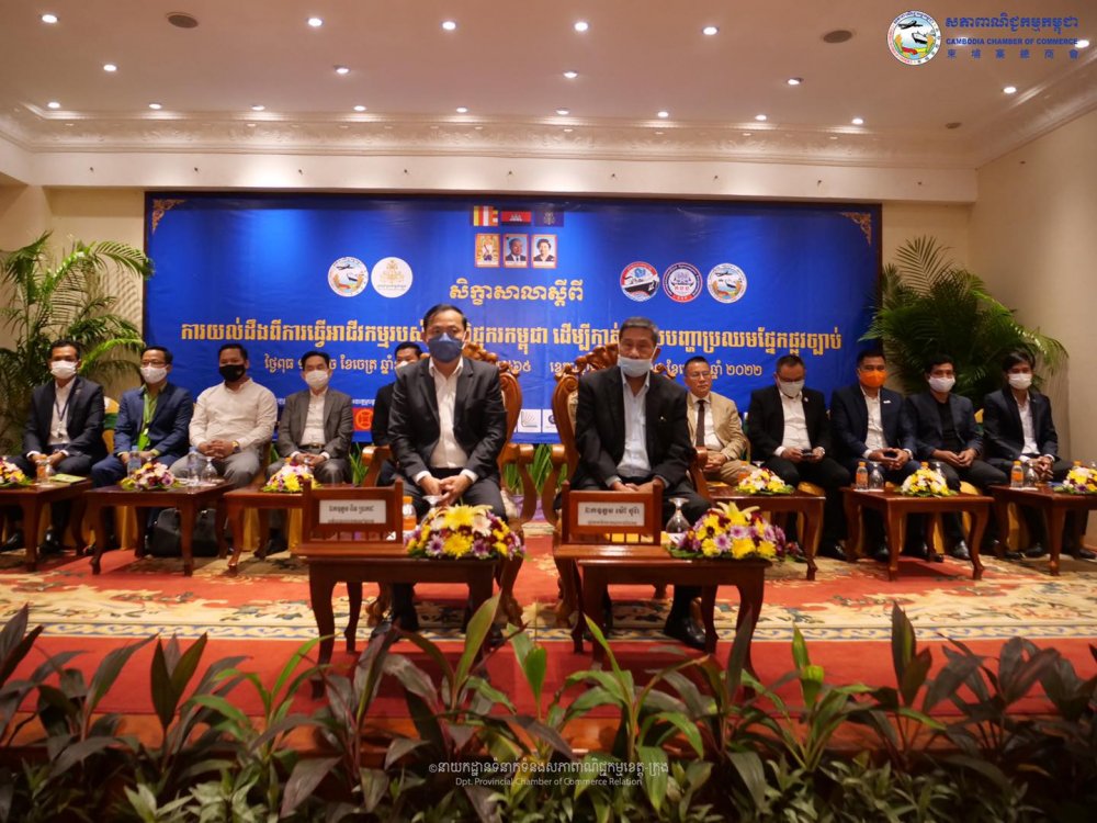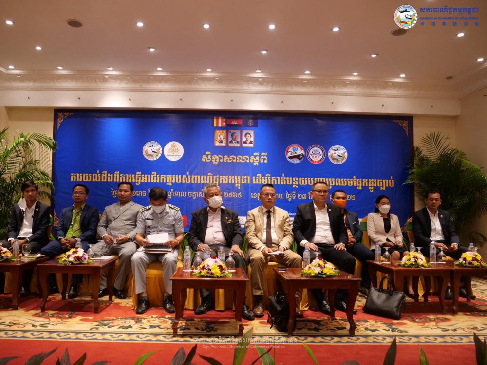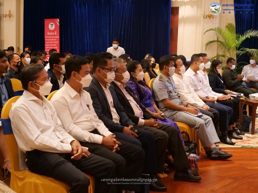 (ខេត្តសៀមរាប)៖ថ្ងៃពុធ ១១ រោច ខែចេត្រ ឆ្នាំខាលចត្វាស័ក ពុទ្ធសករាជ ២៥៦៥ ត្រូវនឹងថ្ងៃទី២៧ ខែមេសា ឆ្នាំ២០២២ ឯកឧត្តមឧកញ៉ា ងួន ម៉េងតិច អគ្គនាយកសភាពាណិជ្ជកម្មកម្ពុជាបានអញ្ជើញចូលរួមសិក្ខាសាលាស្តីអំពី «ការយល់ដឹងពីការធ្វើអាជីវកម្មរបស់ពាណិជ្ជករកម្ពុជា ដើម្បីកាត់បន្ថយបញ្ហាប្រឈមផ្នែកផ្លូវច្បាប់» ក្រោមអធិបតីភាព ឯកឧត្តម ម៉ៅ ថូរ៉ា រដ្ឋលេខាធិការក្រសួងពាណិជ្ជកម្ម ឯកឧត្តម ពិន ប្រាកដ អភិបាលរងខេត្តសៀមរាប ឯកឧត្តម សួន សុផល ប្រធាននាយកដ្ឋានទំនាក់ ទំនងសាធារណៈ និងជំរុញគម្រោងវិនិយោគឯកជនក៏មានវត្តមាននាឱកាសនេះផងដែរ និងបិទអង្គសិក្ខាសាលាដោយឯកឧត្តម ផាន អូន ប្រតិភូរាជរដ្ឋាភិបាលកម្ពុជាទទួលបន្ទុកជាអគ្គនាយកនៃអគ្គនាយកដ្ឋានការពារអ្នកប្រើប្រាស់ កិច្ចការប្រកួតប្រជែង និងបង្រ្កាបការក្លែងបន្លំ(ក.ប.ប) នៃក្រសួងពាណិជ្ជកម្ម នៅសណ្ឋាគាររីជិនស៊ីអង្គរ ដែលអង្គសិក្ខាសាលនេះសហការរៀបចំដោយសភាពាណិជ្ជកម្មកម្ពុជា ក្រុមប្រឹក្សាអភិវឌ្ឍន៍កម្ពុជា(CDC) និងក្រសួងពាណិជ្ជកម្ម គាំទ្រដោយសភាពាណិជ្ជកម្មមណ្ឌលខេត្តសៀមរាប-ឧត្តរមានជ័យ និងទទួលបានការឧបត្ថម្ភពី ក្រុមហ៊ុនធានារ៉ាប់រងអាយុជីវិត FWD Cambodia ,ធនាគារ វីង (ខេមបូឌា) ម.ក. ,ធនាគារ ព្រីនស៍ ម.ក,ធនាគារ ជេ ត្រាស់ រ៉ូយ៉ាល់ ម.ក ,កំពង់ផែស្វយ័តភ្នំពេញ និងធនាគារកាណាឌីយ៉ា។