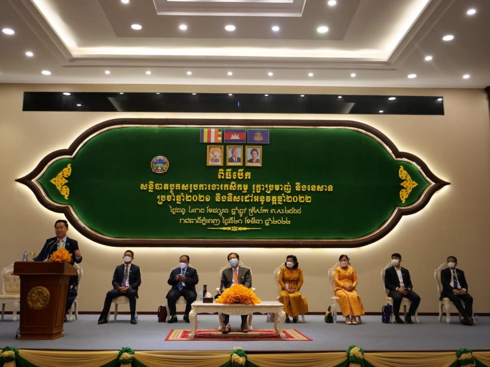 នាថ្ងៃចន្ទ ៤រោច ខែផល្គុន ឆ្នាំឆ្លូវ ត្រីស័ក ព.ស.២៥៦៥ ត្រូវនឹងថ្ងៃទី២១ ខែមីនា ឆ្នាំ២០២២ នៅក្រសួងកសិកម្ម រុក្ខាប្រមាញ់ និងនេសាទ ឧកញ៉ា លឹម ហេង អនុប្រធានសភាពាណិជ្ជកម្មកម្ពុជា តំណាងដ៏ខ្ពង់ខ្ពស់ អ្នកឧកញ៉ា គិត ម៉េង ប្រធានសភាពាណិជ្ជកម្មកម្ពុជា អញ្ជើញចូលរួម និងធ្វើបទអន្តរាគមន៍ ក្នុងកម្មវិធីបើក «សន្និបាតបូកសរុបការងារកសិកម្ម រុក្ខាប្រមាញ់ និងនេសាទទូទាំងប្រទេសប្រចាំឆ្នាំ២០២១ និងទិសដៅអនុវត្តឆ្នាំ២០២២» ក្រោមអធិបតីភាព ឯកឧត្តម វេង សាខុន រដ្ឋមន្ត្រីក្រសួង កសិកម្ម រុក្ខាប្រមាញ់ និងនេសាទ និង វត្តមាន ឯកឧត្តម លោកជំទាវ រដ្ឋលេខាធិការ អនុរដ្ឋលេខាធិការ ឯកឧត្តម លោកជំទាវ ទីប្រឹក្សា ព្រមទាំងវត្តមាន តំណាងក្រសួង-ស្ថាប័នពាក់ព័ន្ធ វិស័យឯកជន ដៃគូអភិវឌ្ឍន៍ មន្ទីរកសិកម្ម រុក្ខាប្រមាញ់ និងនេសាទទូទាំង ២៤រាជ ធានី-ខេត្ត និងថ្នាក់ដឹកនាំអង្គភាពក្រោមឱវាទក្រសួងកសិកម្ម រុក្ខាប្រមាញ់ និងនេសាទ។