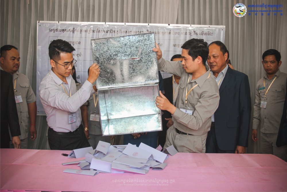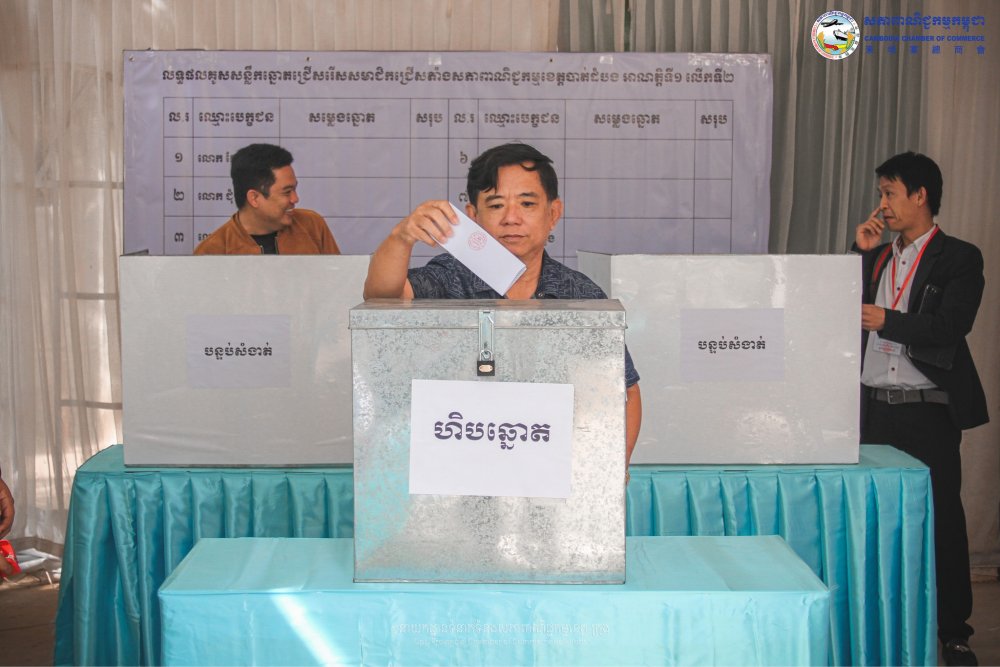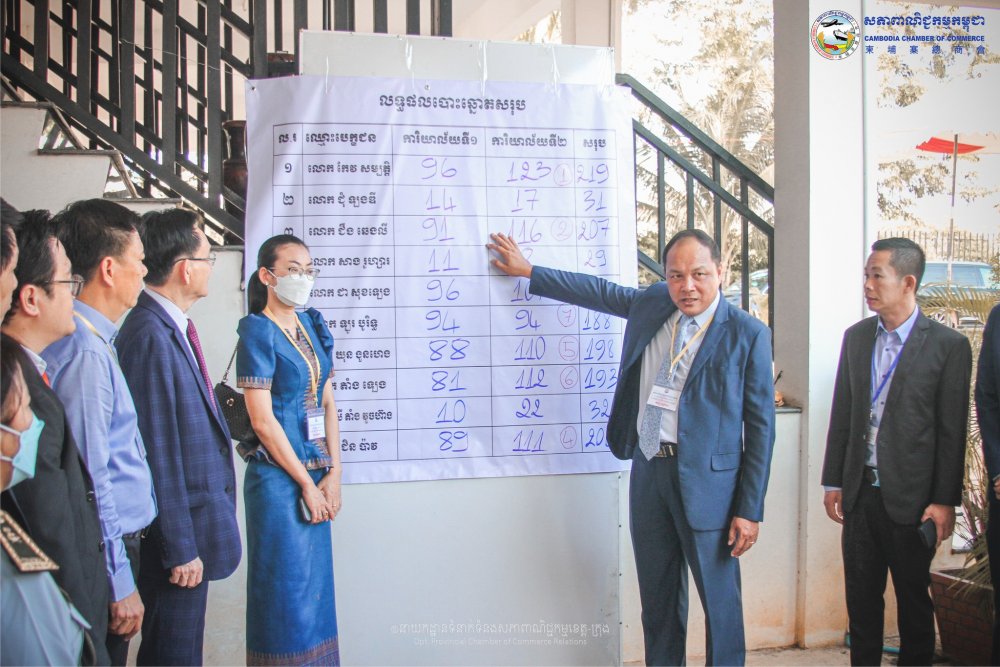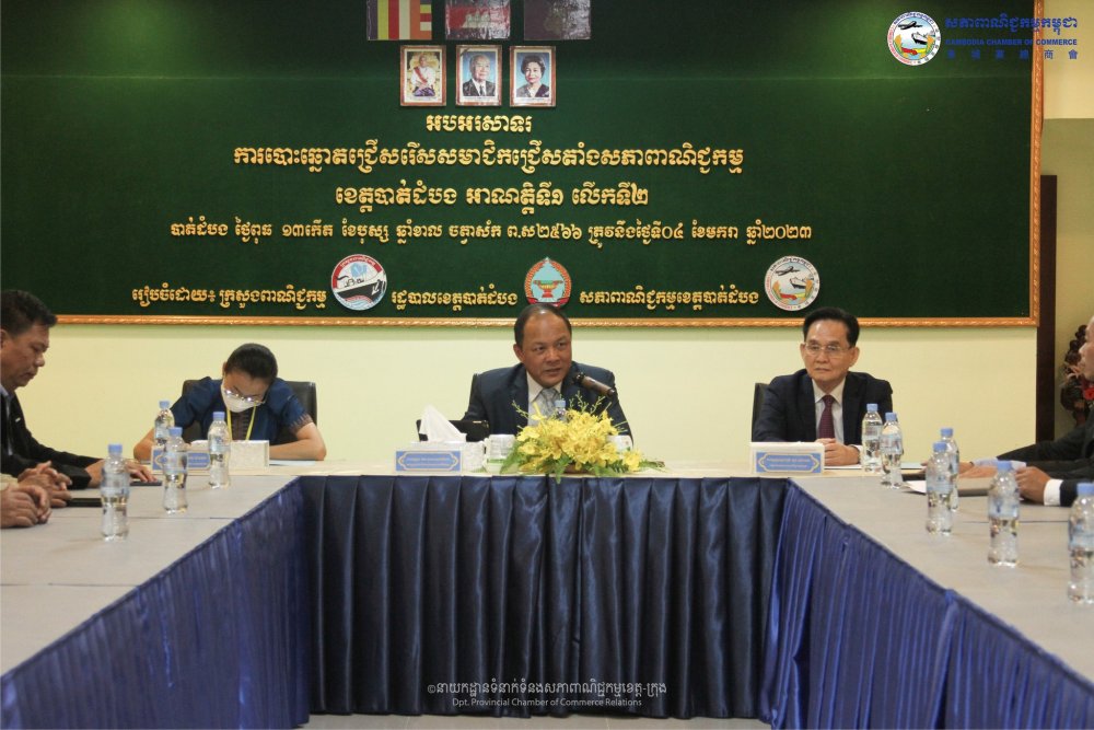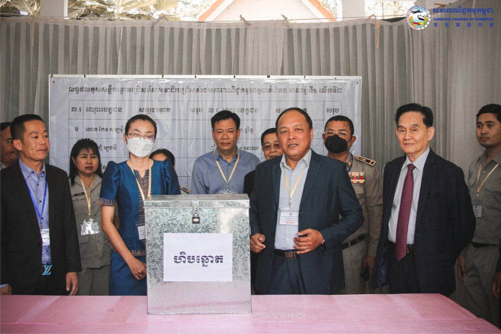(បាត់ដំបង)៖ ថ្ងៃ ពុធ ១៣ កើត ខែបុស្ស ឆ្នាំខាល ចត្វាស័ក ព.ស.២៥៦៦ ត្រូវនឹងថ្ងៃទី០៤ ខែមករា ឆ្នាំ២០២៣ ឯកឧត្តមឧកញ៉ា ងួន ម៉េងតិច អគ្គនាយកសភាពាណិជ្ជកម្មកម្ពុជា និងជាអនុប្រធានគណៈកម្មការរៀបចំការបោះឆ្នោតជ្រើសរើសសមាជិកជ្រើសតាំងសភាពាណិជ្ជកម្មកម្ពុជា និងសភាពាណិជ្ជកម្មរាជធានី-ខេត្ត សម្រាប់អាណត្តិថ្មី និងអាណត្តិបន្ត បានអញ្ជើញចូលរួមការបោះឆ្នោតជ្រើសរើសសមាជិកជ្រើសតាំង និងប្រធានសភាពាណិជ្ជកម្មខេត្តបាត់ដំបង អាណត្តិទី១ លើកទី២ នៅមន្ទីពាណិជ្ជកម្មខេត្តបាត់ដំបងក្រោមអធិបតីភាពឯកឧត្តម គឹម មាសសុខសីហា អនុរដ្ឋលេខាធិការក្រសួងពាណិជ្ជកម្ម លោកជំទាវ កែវ ដាណា អភិបាលរង នៃគណៈអភិគណៈខេត្តបាត់ដំបង ព្រមទាំងលោក លោកស្រីប្រធានមន្ទី អង្គភាពពាក់ព័ន្ធក្នុងខេត្តដែលមានបេក្ខជនឈរឈ្មោះបោះឆ្នោតចំនួន១០រូប និងអាជីវករចុះឈ្មោះអ្នកបោះឆ្នោតចំនួនន៣៣៣នាក់។