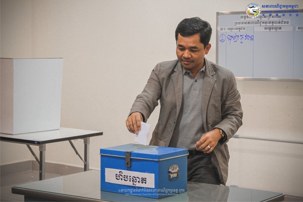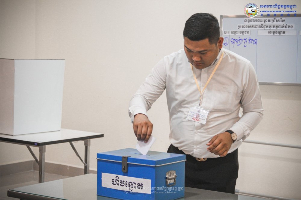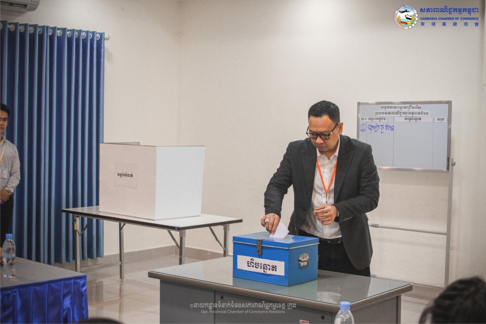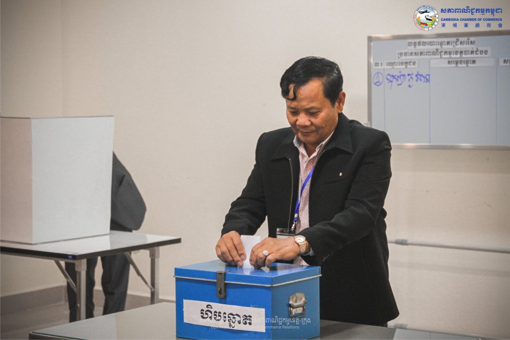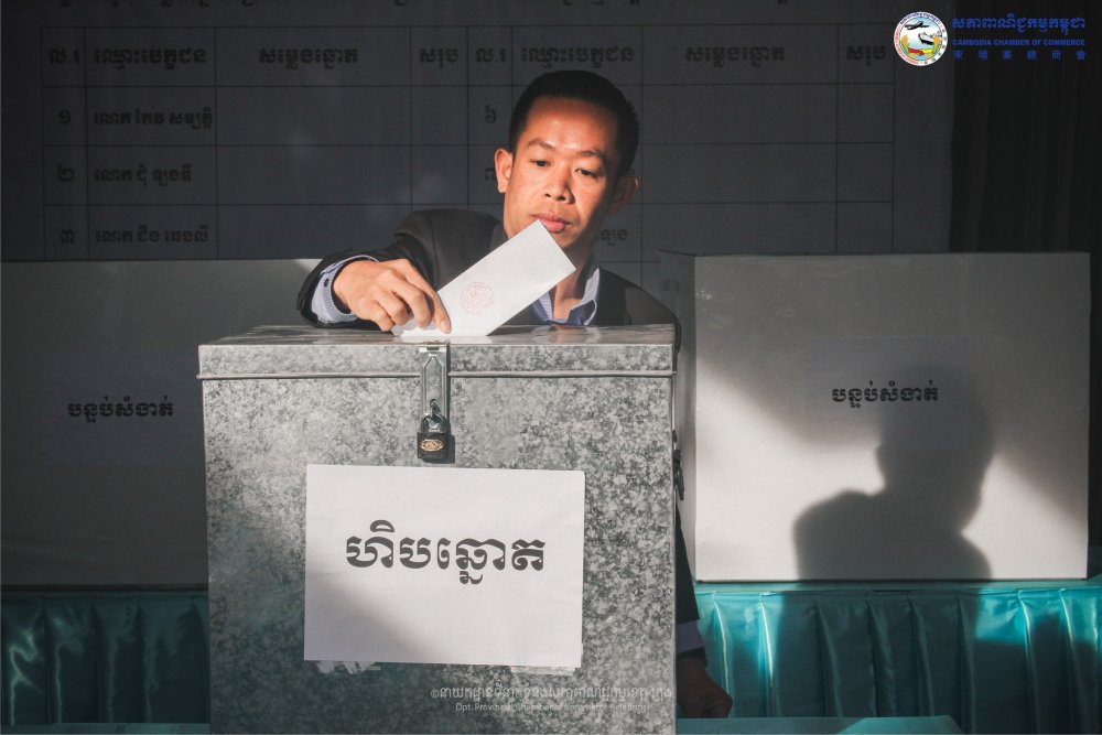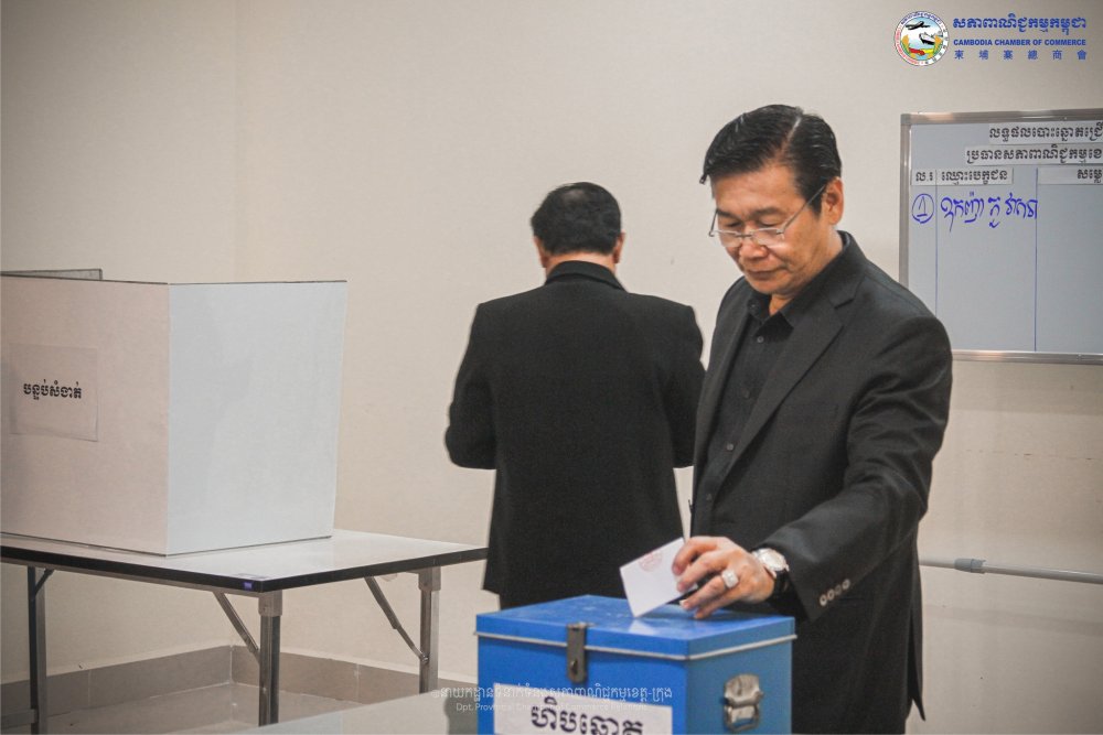 (បាត់ដំបង)៖ ថ្ងៃ ពុធ ១៣ កើត ខែបុស្ស ឆ្នាំខាល ចត្វាស័ក ព.ស.២៥៦៦ ត្រូវនឹងថ្ងៃទី០៤ ខែមករា ឆ្នាំ២០២៣ ឯកឧត្តមឧកញ៉ា ងួន ម៉េងតិច អគ្គនាយកសភាពាណិជ្ជកម្មកម្ពុជា និងជាអនុប្រធានគណៈកម្មការរៀបចំការបោះឆ្នោតជ្រើសរើសសមាជិកជ្រើសតាំងសភាពាណិជ្ជកម្មកម្ពុជា និងសភាពាណិជ្ជកម្មរាជធានី-ខេត្ត សម្រាប់អាណត្តិថ្មី និងអាណត្តិបន្ត បានអញ្ជើញចូលរួមការបោះឆ្នោតជ្រើសរើសសមាជិកជ្រើសតាំង និងប្រធានសភាពាណិជ្ជកម្មខេត្តបាត់ដំបង អាណត្តិទី១ លើកទី២ នៅមន្ទីពាណិជ្ជកម្មខេត្តបាត់ដំបងក្រោមអធិបតីភាពឯកឧត្តម គឹម មាសសុខសីហា អនុរដ្ឋលេខាធិការក្រសួងពាណិជ្ជកម្ម លោកជំទាវ កែវ ដាណា អភិបាលរង នៃគណៈអភិគណៈខេត្តបាត់ដំបង ព្រមទាំងលោក លោកស្រីប្រធានមន្ទី អង្គភាពពាក់ព័ន្ធក្នុងខេត្តដែលមានបេក្ខជនឈរឈ្មោះបោះឆ្នោតចំនួន១០រូប និងអាជីវករចុះឈ្មោះអ្នកបោះឆ្នោតចំនួនន៣៣៣នាក់។