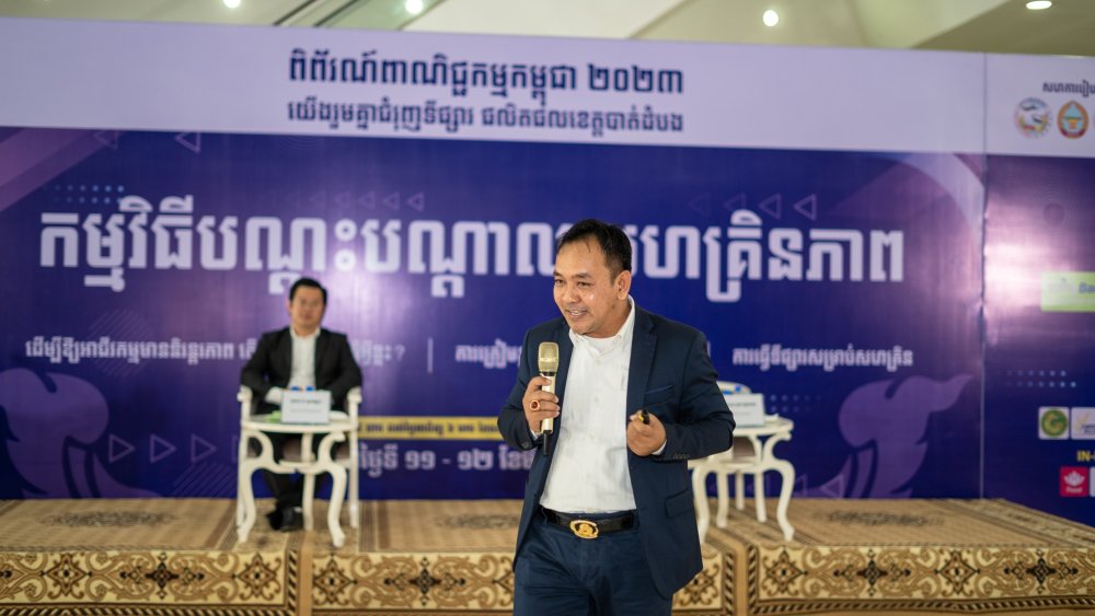បាត់ដំបង៖ នារសៀល ថ្ងៃទី ១១ ខែមីនា ឆ្នាំ២០២៣ ក្នុងព្រឹត្តិការណ៍ពាណិជ្ជកម្មកម្ពុជា២០២៣ ក្រោមប្រធានបទ «យើងរួមគ្នា ជំរុញទីផ្សារផលិតផលខេត្តបាត់ដំបង» បានរៀបចំកម្មវិធីបណ្តុះបណ្តាលសហគ្រិនភាព ប្រធានបទ៖ ដើម្បីអោយអាជីវកម្មមាននិរន្តរភាព តើសហគ្រិនត្រូវធ្វើអ្វីខ្លះ ដែលបានអញ្ជើញនិស្សិត ក្នុងខេត្តបាត់ដំបង ហើយមានអ្នកចូលរួមប្រមាណ ៨០ នាក់ និងទទួលយកបទពិសោធន៍ល្អៗតាមរយៈការចែករំលែកបទពិសោធន៍ពីសំណាក់ វាគ្មិននីមួយៗ។