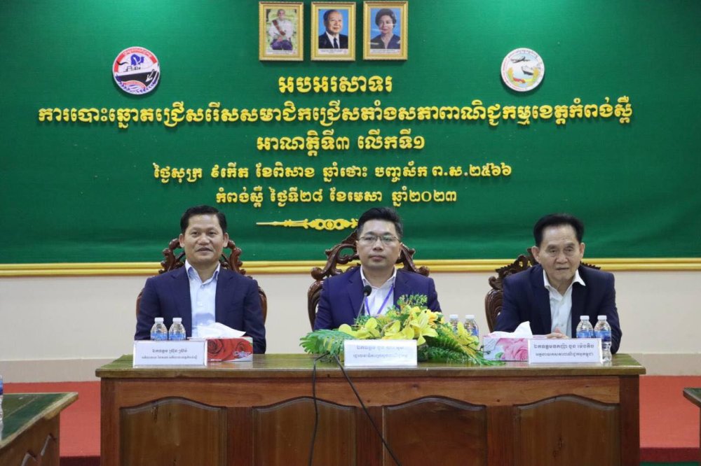 (កំពង់ស្ពឺ)៖ ថ្ងៃទី២៨ ខែមេសា ឆ្នាំ២០២៣ នៅមន្ទីរពាណិជ្ជកម្មខេត្តកំពង់ស្ពឺបានបើកការិយាល័យបោះឆ្នោតជ្រើសរើសសមាជិកជ្រើសតាំង និងប្រធានសភាពាណិជ្ជកម្មខេត្តកំពង់ស្ពឺ អាណត្តិទី៣ លើកទី១ តាមនិតិវិធីដែលបានគ្រោងទុក ការបើក ការប្រកាសលទ្ធផល និងការបិទកម្មវិធីទាំងមូលគឺស្ថិតក្រោមអធិបតីភាព ឯកឧត្តម បួន សារៈមុនី រដ្ឋលេខាធិការក្រសួងពាណិជ្ជកម្ម និងជាអនុប្រធានគណៈកម្មការរៀបចំការបោះឆ្នោតជ្រើសរើសសមាជិកជ្រើសតាំងសភាពាណិជ្ជកម្មកម្ពុជា និងសភាពាណិជ្ជកម្មរាជធានី-ខេត្ត សម្រាប់អាណត្តិថ្មី និងអាណត្តិបន្ត ឯកឧត្តម ស្រ៊ុន ស្រ៊ន់ អភិបាលរងនៃគណៈអភិបាលខេត្តកំពង់ស្ពឺ ឯកឧត្តមឧកញ៉ា ងួន ម៉េងតិច អគ្គនាយកសភាពាណិជ្ជកម្មកម្ពុជា និងជាអនុប្រធានគណៈកម្មការរៀបចំការបោះឆ្នោតជ្រើសរើសសមាជិកជ្រើសតាំងសភាពាណិជ្ជកម្មកម្ពុជា និងសភាពាណិជ្ជកម្មរាជធានី-ខេត្ត សម្រាប់អាណត្តិថ្មី និងអាណត្តិបន្តសូមបញ្ចាក់ថាចំនួនអ្នកមកបោះឆ្នោតសរុបស្មើនឹង ៧៧%នៃចំនួនអ្នកចុះឈ្មោះបោះឆ្នោតសរុប ជាលទ្ធផលយើងជ្រើសរើសបានសមាជិកជ្រើសតាំងថ្មីចំនួន១១រូបក្នុងចំណោមបេក្ខជនឈរឈ្មោះចំនួន១៣រូប ចំពោះបេក្ខភាពឈរឈ្មោះជាប្រធានសភាពាណិជ្ជកម្មខេត្តកំពង់ស្ពឹ មាន០១រូប ហើយជាលទ្ធផលឯកឧត្តមឧកញ៉ា ឡេង សុខគាត្រូវបានសមាជិកបន្តគាំទ្រជាប្រធានសភាពាណិជ្ជកម្មខេត្តកំពង់ស្ពឺ អាណត្តិទី៣ លើកទី១ នេះជាបន្តទៀត ។