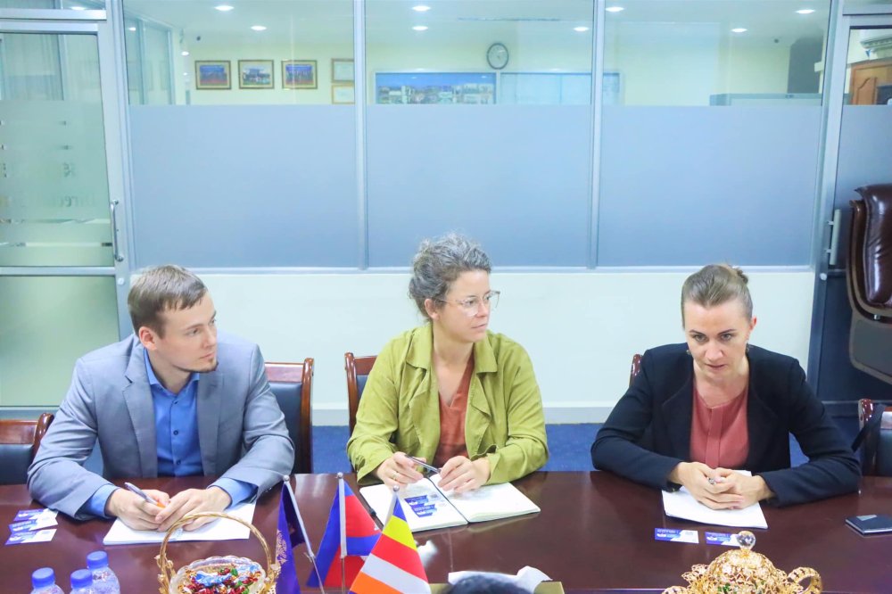 ថ្ងៃអង្គារ ១០ កើត ខែបឋមាសាឍ ឆ្នាំថោះ បញ្ចវាស័ក ព.ស ២៥៦៧ ត្រូវនឹងថ្ងៃទី២៧ ខែមិថុនា ឆ្នាំ២០២៣ វេលាម៉ោង ០៣:០០នាទីរសៀល នាអគ្គនាយកដ្ឋានសភាពាណិជ្ជកម្មកម្ពុជា ឯកឧត្តម បណ្ឌិត តាន់ មុនីវណ្ណ អនុប្រធានសភាពាណិជ្ជកម្មកម្ពុជា និងឯកឧត្តម ឧកញ៉ា ងួន ម៉េងតិច អគ្គនាយកសភាពាណិជ្ជកម្មកម្ពុជា បានអនុញ្ញាត លោកស្រី Linda Mende អ្នកជំនាញតំបន់ នៃការជំរុញនាំចូល ប្រចាំប្រទេសស្រីលង្កា នៃក្រសួងសហព័ន្ធអាល្លឺម៉ង់សម្រាប់កិច្ចសហប្រតិបត្តិការសេដ្ឋកិច្ច និងអភិវឌ្ឍន៍ (BMZ) និងសហការី ចូលជួបពិភាក្សាការងារ ក្នុងគោលបំណង ស្វែងយល់អំពីសកម្មភាពាណិជ្ជកម្មកម្ពុជា និងបរិយាកាសធុរកិច្ចនិងវិនិយោគនៅកម្ពុជា ជាពិសេសស្វែងយល់អំពីសកម្មភាពនាំចេញ-នាំចូល លើវិស័យកសិកម្ម ជាដើម។ ហើយក្រុមការងារជំនាញ នៃក្រសួងសហព័ន្ធអាល្លឺម៉ង់សម្រាប់កិច្ចសហប្រតិបត្តិការសេដ្ឋកិច្ច និងអភិវឌ្ឍន៍ (BMZ) ជម្រាបផងដែថា នឹងមានគណៈប្រតភូធុរកិច្ចពីប្រទេសរបស់ខ្លួនមកកម្ពុជា ស្វែងរកដៃគូលើវិស័យជាក់លាក់គឺ ការគ្រប់គ្រងកាកសំណល់ (Waste Management Secror) នៅខែតុលា ឆ្នាំ២០២៣ នាពេលខ្លីខាងមុខនេះ។