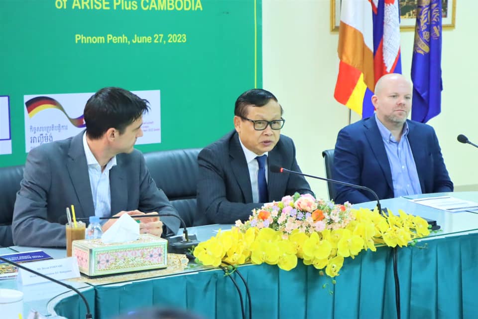 នាព្រឹកថ្ងៃអង្គារ ១០កើត ខែបឋមសាឍ ឆ្នាំថោះ បញ្ចស័ក ព.ស ២៥៦៧ ត្រូវនឹងថ្ងៃទី២៧ ខែមិថុនា ឆ្នាំ២០២៣ នាក្រសួងពាណិជ្ជកម្ម ឯកឧត្តមបណ្ឌិត តាន់ មុនីវណ្ណ អនុប្រធានសភាពាណិជ្ជកម្មកម្ពុជា តំណាង អ្នកឧកញ៉ា គិត ម៉េង ប្រធានសភាពាណិជ្ជកម្មកម្ពុជា បានចូលរួមក្នុងកិច្ចប្រជុំគណៈកម្មការតម្រង់ទិសគម្រោងគាំទ្រសមាហរណកម្មតំបន់អាស៊ាន-ជំនួយពាក់ព័ន្ធពាណិជ្ជកម្មកម្ពុជា (Arise Plus Cambodia) លើកទី ៥ ក្រោមអធិបតីភាព ឯកឧត្តម សុខ សុភ័ក្រ រដ្ឋលេខាធិការក្រសួងពាណិជ្ជកម្ម។ កម្មវិធីនេះក៏មានការចូលរួមពីសំណាក់លោក Bryan Fornari ប្រធានផ្នែក កិច្ច សហប្រតិបត្តិការ នៃសហភាព អឺរ៉ុប និង លោក Till Ahnert ប្រធាននៃគម្រោង Arise+ ប្រចាំនៅកម្ពុជា និងតំណាងមន្រ្តីពាក់ព័ន្ធក្រសួងពាណិជ្ជកម្ម, តំណាងក្រសួងសេដ្ឋកិច្ច និងហិរញ្ញវត្ថុ, តំណាងអគ្គនាយកដ្ឋានគយ និងរដ្ឋាករកម្ពុជា, តំណាងសភាពាណិជ្ជកម្មអឺរ៉ុប, ក្រុមការងារ GIZ & Arise+ ប្រចាំនៅកម្ពុជា, និងអ្នកពាក់ព័ន្ធមួយចំនួនទៀតផងដែរ។