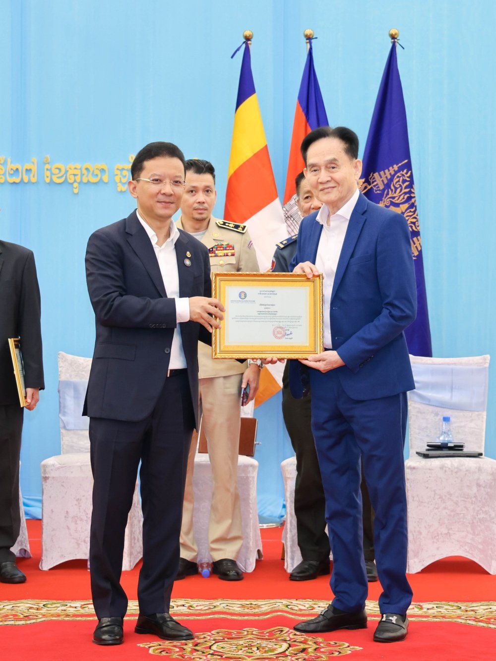 ភ្នំពេញ៖ នារសៀលថៃ្ងច័ន្ទ ទី២៧ ខែតុលា ឆ្នាំ២០២៥ នៅមជ្ឍមណ្ឌល ឌឺ ហ្គ្រេនធឺរ៉េស (The Grand Terrace) វេលាម៉ោង ២:៣០ នាទី, ឯកឧត្តម ឧកញ៉ា ងួន ម៉េងតិច អគ្គនាយកសភាពាណិជ្ជកម្មកម្ពុជា តំណាង អ្នកឧកញ៉ា គិត ម៉េង ប្រធានសភាពាណិជ្ជកម្មកម្ពុជា និងជាប្រធានគណៈកម្មការសម្របសម្រួលក្រុមការងារផ្នែកឯកជន សម្រាប់យន្តការវេទិការាជរដ្ឋាភិបាល-ផ្នែកឯកជន (គ.ស.ឯ.រ.ជ) បានដឹកនាំសមាជិក សមាជិកាសភាពាណិជ្ជកម្មកម្ពុជា អញ្ជើញចូលរួមក្នុងកម្មវិធី យុទ្ធនាការផ្សព្វផ្សាយការចុះបញ្ជីផលិតផល (ច.ប.ផ) ក្រោមអធិបតីភាព ឯកឧត្តម ហែម វណ្ណឌី រដ្ឋមន្ត្រីក្រសួងឧស្សាហកម្ម វិទ្យាសាស្រ្ត បច្ចេកវិទ្យា និងនវានុវត្តន៍។ កម្មវិធីនេះក៏មានការចូលរួមផងដែរពីសំណាក់មន្រ្តីពាក់ព័ន្ធនៃក្រសួងឧស្សាហកម្ម វិទ្យាសាស្រ្ត បច្ចេកវិទ្យា និងនវានុវត្តន៍, តំណាងក្រុមហ៊ុនឯកជន សមាគម, ធុរជន, ពាណិជ្ជករ និងអ្នកពាក់ព័ន្ធជាច្រើនទៀតផងដែរ។