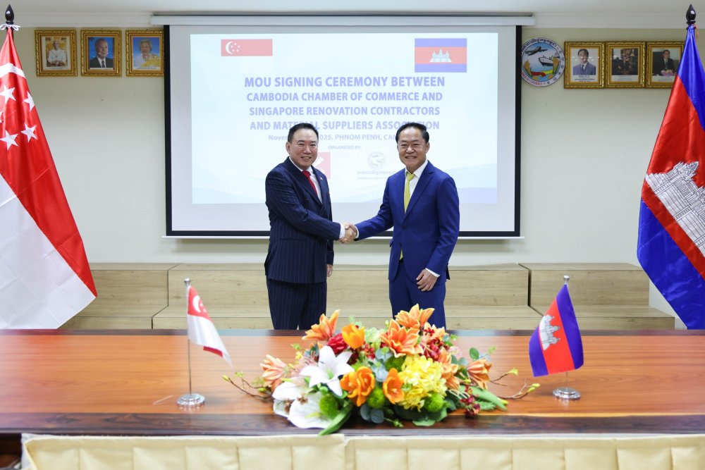 សភាពាណិជ្ជកម្មកម្ពុជាចុះអនុស្សរណៈរយោគយល់គ្នាជាមួយ សមាគមអ្នកម៉ៅការជួសជុល និងអ្នកផ្គត់ផ្គង់សម្ភារៈសំណង់សិង្ហបុរី