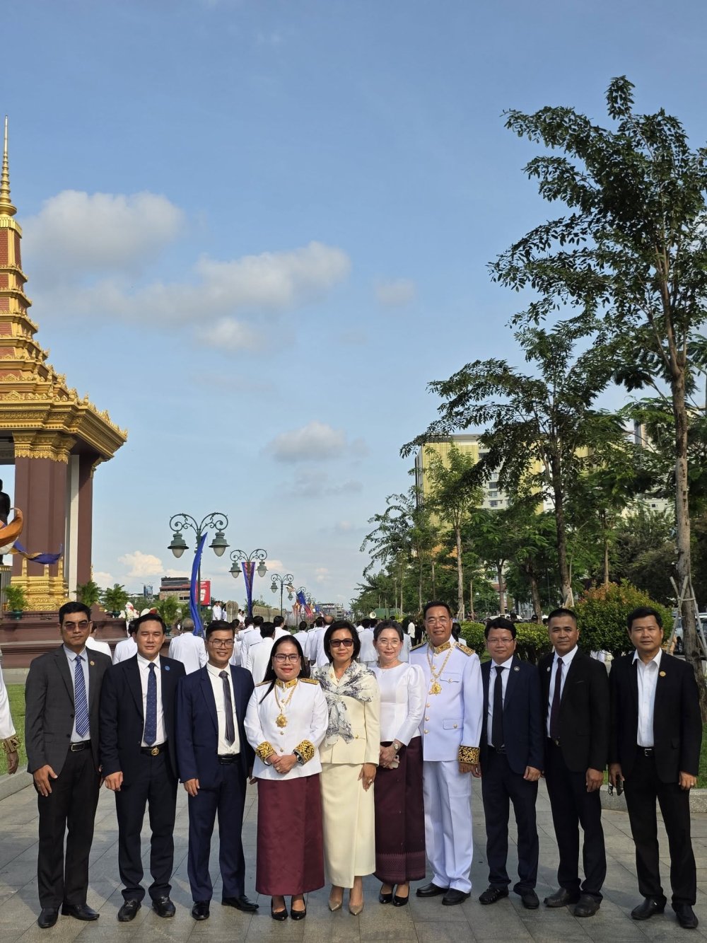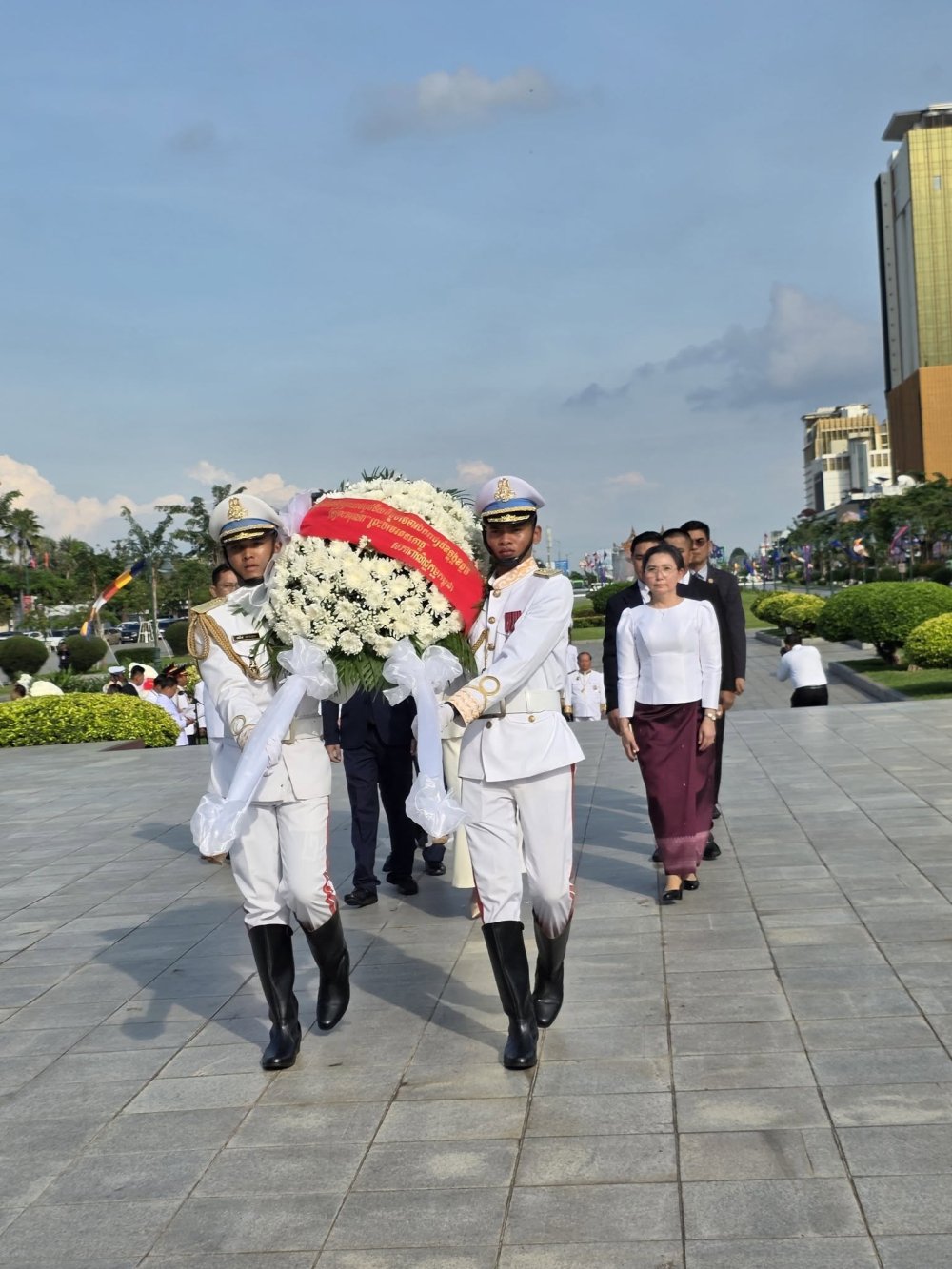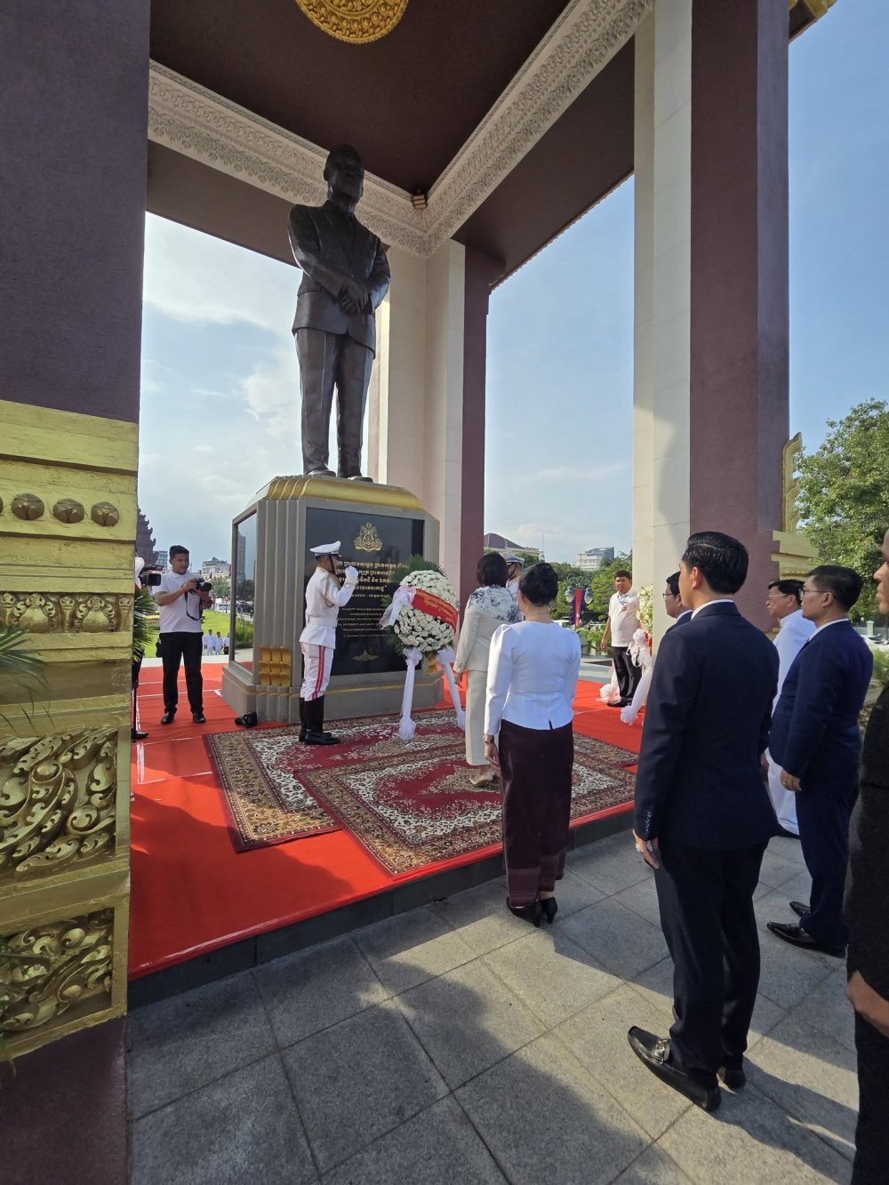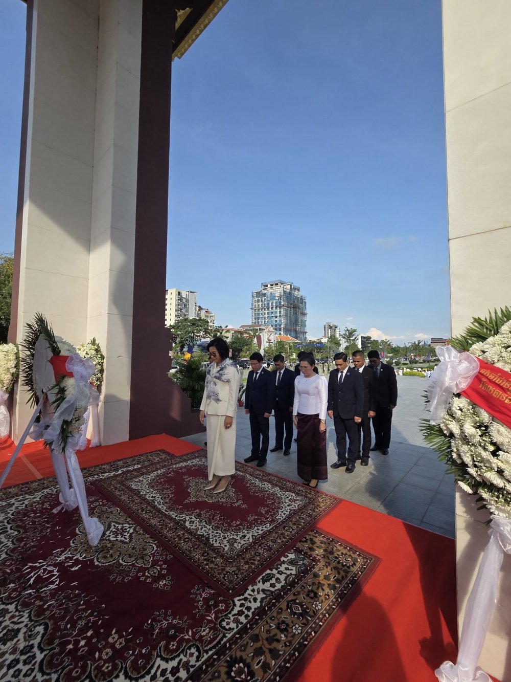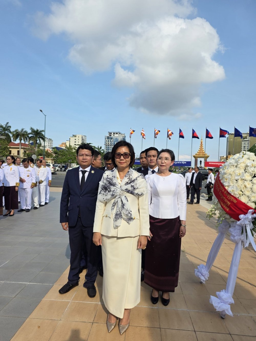(រាជធានីភ្នំពេញ)៖ នារសៀលថ្ងៃសៅរ៍ ៣រោច ខែកត្តិក ឆ្នាំម្សាញ់ សប្តស័ក ពុទ្ធសករាជ ២៥៦៩ ត្រូវនឹងថ្ងៃទី៨ ខែវិច្ឆិកា ឆ្នាំ២០២៥ អ្នកឧកញ៉ា គិត ម៉េង ប្រធានសភាពាណិជ្ជកម្មកម្ពុជា និងជាប្រធានក្រុមប្រឹក្សាពិគ្រោះយោបល់ធុរកិច្ចអាស៊ានសម្រាប់កម្ពុជា បានចាត់តាំង លោកជំទាវ ឧកញ៉ា កែវ មុំ សមាជិកសភាពាណិជ្ជកម្មកម្ពុជា ដឹកនាំគណៈប្រតិភូ សភាពាណិជ្ជកម្មកម្ពុជា អញ្ជើញចូលរួមដាក់កម្រងផ្កាគោរពវិញ្ញាណក្ខន្ធ នៅវិមានឯករាជ្យ និងថ្វាយកម្រងផ្កា គោរពព្រះវិញ្ញាណក្ខន្ធព្រះករុណា សម្តេចព្រះនរោត្តម សីហនុ ព្រះមហាវីរក្សត្រ ព្រះវររាជបិតាឯករាជ្យ បូរណភាពទឹកដី និងឯកភាពជាតិខ្មែរ ព្រះបរមរតនកោដ្ឋ នៅមណ្ឌបព្រះបរមរូប ខាងកើតវិមានឯករាជ្យ ដើម្បីរំលឹកខួបអនុស្សាវរីយ៍លើកទី៧២ នៃទិវាបុណ្យឯករាជ្យជាតិ ៩ វិច្ឆិកា (៩ វិច្ឆិកា ១៩៥៣ - ៩ វិច្ឆិកា ២០២៥)