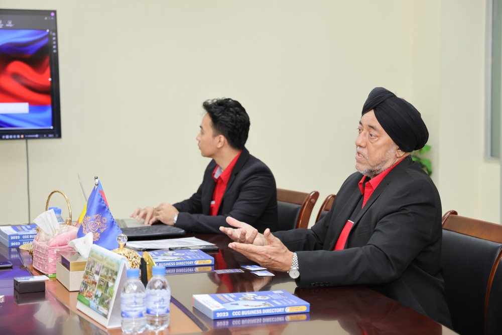 (សភាពាណិជ្ជកម្មកម្ពុជា) នាព្រឹកថ្ងៃទី ០៣ ខែកក្កដា ឆ្នាំ២០២៤ ឯកឧត្តម ឧកញ៉ា ងួន ម៉េងតិច អគ្គនាយកសភាពាណិជ្ជកម្ម តំណាងដ៏ខ្ពង់ខ្ពស់ អ្នកឧកញ៉ា គិត ម៉េង ប្រធានសភាពាណិជ្ជកម្មកម្ពុជា និងជាប្រធានក្រុមប្រឹក្សាពិគ្រោះយោបល់ធុរកិច្ចអាស៊ានសម្រាប់កម្ពុជា និងលោក Paul Clements អនុប្រធានក្រុមហ៊ុន រ៉ូយាល់គ្រុប អនុញ្ញាតអោយ លោក Jaswant Singh អនុប្រធានជាន់ខ្ពស់នៃវិទ្យាស្ថាន MIT Academy SDN. BHD. រួមទាំងសហការីចូលជួបសម្តែងការគួរសម និងពិភាក្សាការងារ។