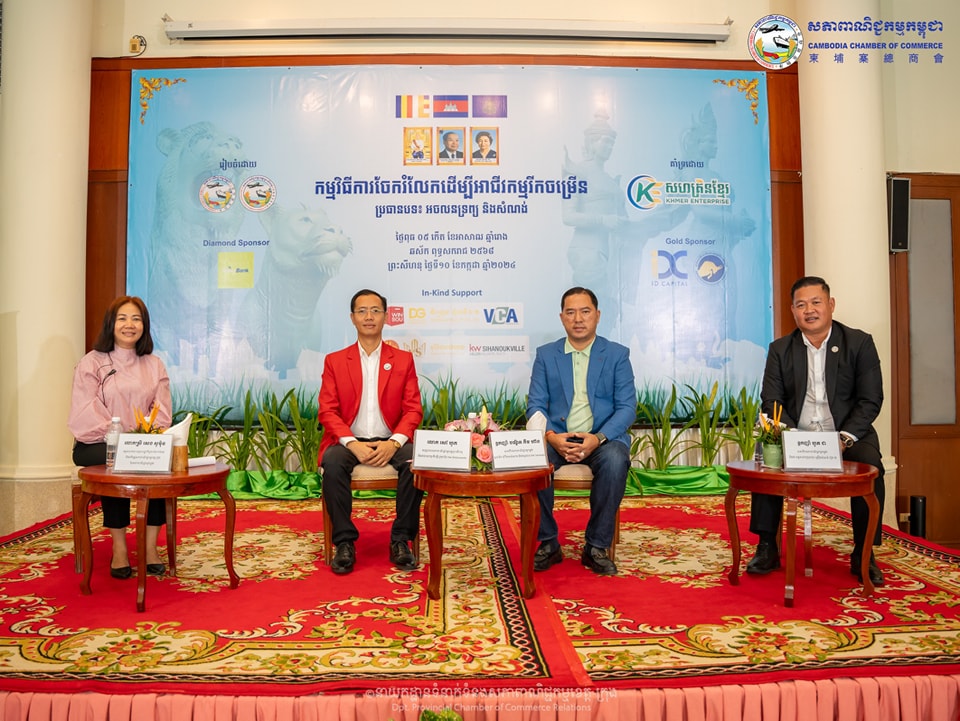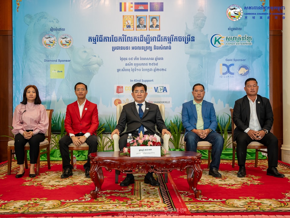 (ខេត្តព្រះសីហនុ)៖ នាព្រឹកថ្ងៃពុធ ទី១០ ខែកក្កដា ឆ្នាំ២០២៤ ក្រោមការគាំទ្រដោយ សហគ្រិនខ្មែរ និងដៃគូសហការនានា សភាពាណិជ្ជកម្មកម្ពុជា និងសភាពាណិជ្ជកម្មខេត្តព្រះសីហនុ បានរៀបចំកម្មវិធីការចែករំលែកដើម្បីអាជីវកម្មរីកចម្រើន ក្រោមប្រធានបទ «អចលនទ្រព្យ និងសំណង់» ក្នុងគោលបំណងឱ្យសមាជិក សមាជិកា សភាពាណិជ្ជកម្មកម្ពុជា បានជួបជុំសិក្សាស្វែងយល់ពីឱកាសអាជីវកម្មក្នុងខេត្តព្រះសីហនុ ក៏ដូចជាការប្ដូរបទពិសោធន៍គ្នាទៅវិញទៅមក ដើម្បីទទួលបានគំនិតថ្មីៗយកទៅអភិវឌ្ឍន៍អាជីវកម្មរបស់ខ្លួន។