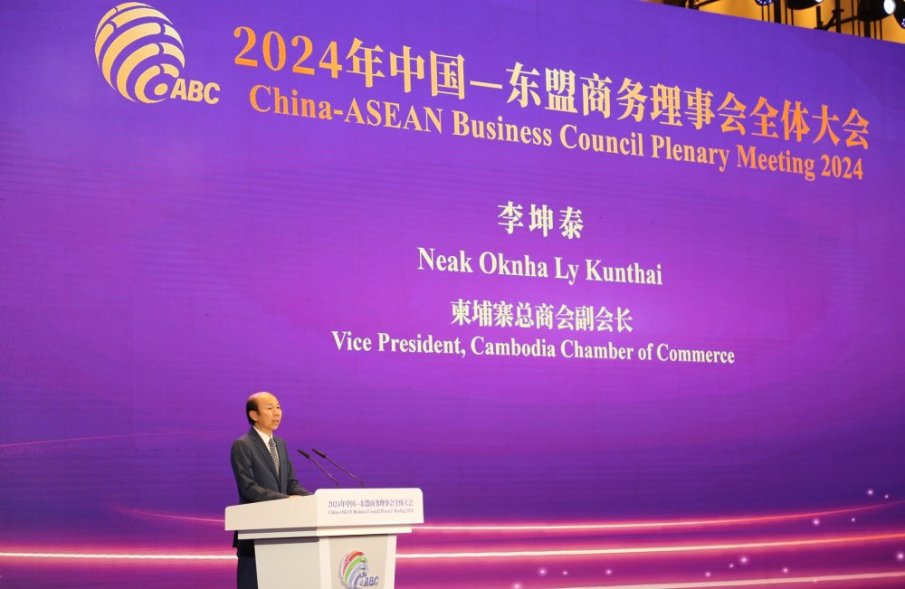 ទីក្រុងណានីង ប្រទេសចិន៖ នារសៀលថ្ងៃ ពុធ ទី៥ កើត ខែអាសាធ ឆ្នាំរោង ឆស័ក ព.ស ២៥៦៨ ត្រូវនឹងថ្ងៃទី ១០ ខែកក្កដា ឆ្នាំ ២០២៤ អ្នកឧកញ៉ា លី ឃុនថៃ អនុប្រធានសភាពាណិជ្ជកម្មកម្ពុជា និងជាសមាជិកក្រុមប្រឹក្សាធុរកិច្ចអាស៊ីខាងកើត តំណាងអ្នកឧកញ៉ា គិត ម៉េង ប្រធានសភាពាណិជ្ជកម្មកម្ពុជា និងជាប្រធានក្រុមប្រឹក្សាធុរកិច្ចអាស៊ីខាងកើត បានអញ្ជើញចូលរួម និង ថ្លែងសុន្ទរកថា នៅក្នុង កិច្ចប្រជុំពេញអង្គក្រុមប្រឹក្សាធុរកិច្ចចិនអាស៊ានដែលមានការអញ្ជើញចូលរួមពី លោក តាន់ ពិឈ័ង អភិបាលរងតំបន់ស្វយ័ត ជាំងក្វាងស៊ី លោក ចាង សាវគាំង អនុប្រធានក្រុមប្រឹក្សាជំរុញពាណិជ្ជកម្មអន្តរជាតិចិន រួមនិង មន្ត្រីជាន់ខ្ពស់ពី រដ្ឋាភិបាលចិន តំណាងស្ថានទូត និងអគ្គកុងស៊ុល អាស៊ានប្រចាំទីក្រុងណានីង តំណាងមកពីសភាពាណិជ្ជកម្មអាស៊ានទាំង១០ប្រទេស និងធុរជនចិន សរុបប្រមាណ ២៥០ នាក់។