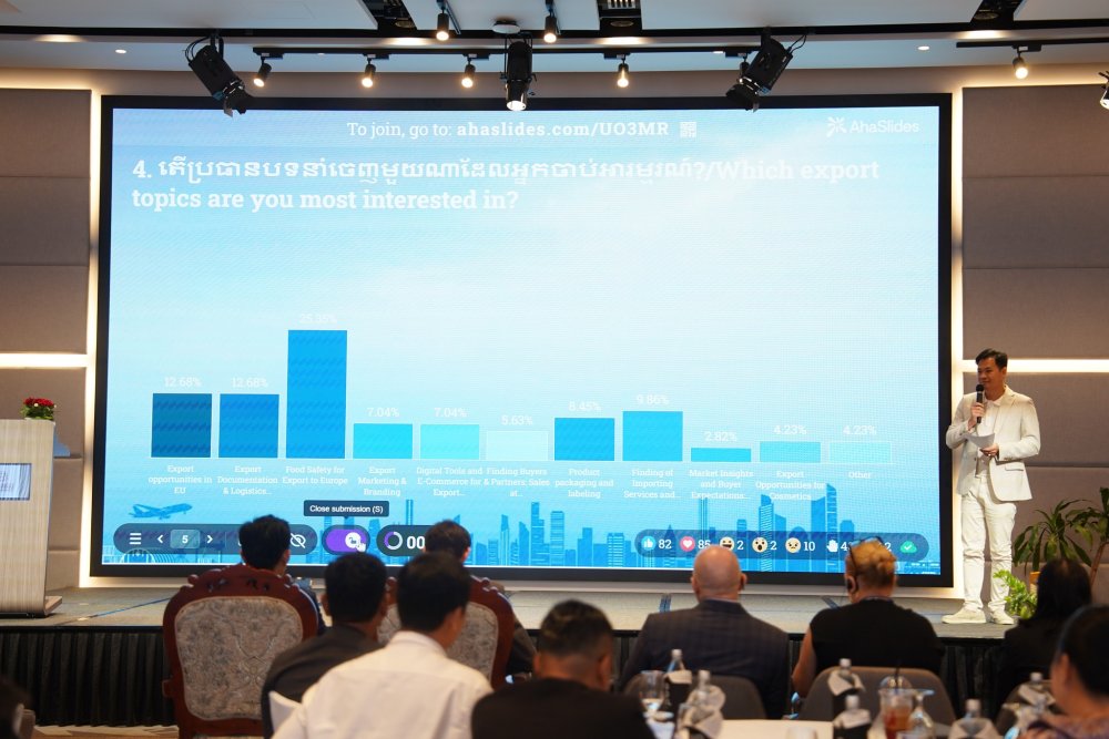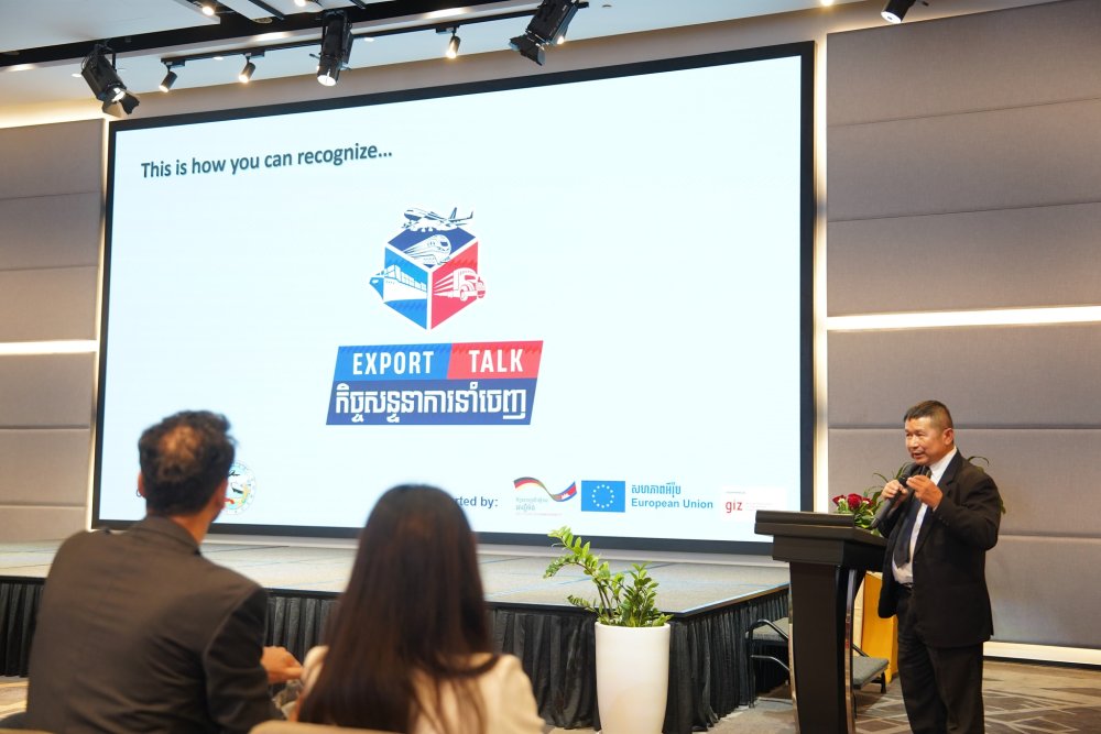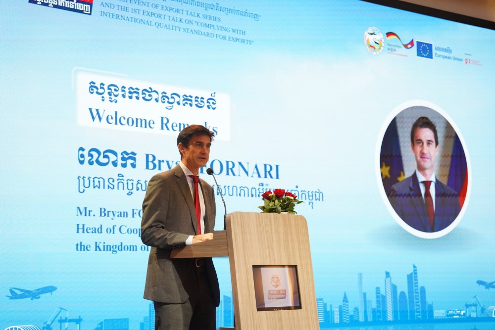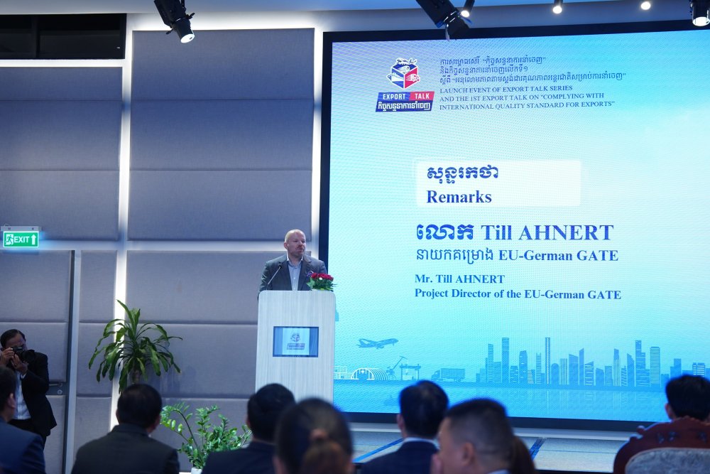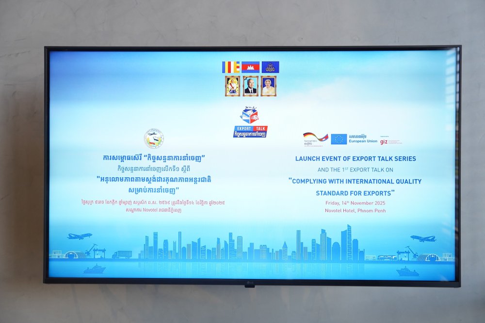 (រាជធានីភ្នំពេញ)៖នាព្រឹកថ្ងៃសុក្រ ៩រោច ខែកត្តិក ឆ្នាំម្សាញ់ ព.ស. ២៥៦៩ ត្រូវនឹងថ្ងៃទី១៤ ខែវិច្ឆិកា ឆ្នាំ២០២៥ សភាពាណិជ្ជកម្មកម្ពុជា បានរៀបចំពិធីសម្ពោធជាស៊េរី “កិច្ចសន្ទនាការនាំចេញ” ក្រោមប្រធានបទ "អនុលោមភាពតាមស្តង់ដារគុណភាពអន្តរជាតិដើម្បីការនាំចេញ" ដែលមានការគាំទ្រដោយ សហភាពអឺរ៉ុប ប្រចាំកម្ពុជា និង ទីភ្នាក់ងារអាល្លឺម៉ង់សម្រាប់កិច្ចសហប្រតិបត្តិការអន្តរជាតិ (GIZ) ប្រចាំកម្ពុជា ក្រោមគម្រោង EU-German GATE។