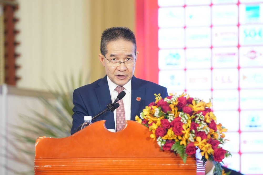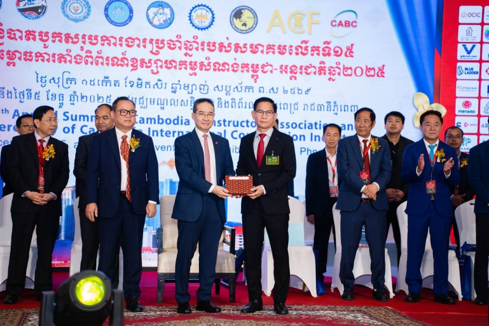 (រាជធានីភ្នំពេញ)៖នាព្រឹកថ្ងៃសុក្រ ១៥កើត ខែមិគសិរ ឆ្នាំម្សាញ់ ព.ស. ២៥៦៩ ត្រូវនឹងថ្ងៃទី៥ ខែធ្នូ ឆ្នាំ២០២៥ អ្នកឧកញ៉ា លឹម ហេង អនុប្រធានសភាពាណិជ្ជកម្មកម្ពុជា តំណាងដ៏ខ្ពង់ខ្ពស់ អ្នកឧកញ៉ា គិត ម៉េង ប្រធានសភាពាណិជ្ជកម្មកម្ពុជា និងជាប្រធានក្រុមប្រឹក្សាពិគ្រោះយោបល់ធុរកិច្ចអាស៊ានសម្រាប់កម្ពុជា និងសមាជិក សមាជិការ សភាពាណិជ្ជកម្មកម្ពុជា អញ្ជើញចូលរួមពិធីបើក មហាសន្និបាតបូកសរុបការងារលើកទី១៥ និងកម្មវិធីពិព័រណ៍ឧស្សាហកម្មសំណង់កម្ពុជា-អន្តរជាតិ ក្រោមអធិបតីភាព ឯកឧត្តម ឡៅ ទិព្វសីហា រដ្ឋលេខាធិការ ក្រសួងរៀបចំដែនដី នគរូបនីយកម្ម និងសំណង់ តំណាងដ៏ខ្ពង់ខ្ពស់ ឯកឧត្តម សាយ សំអាល់ រដ្ឋមន្ដ្រីក្រសួងរៀបចំដែនដី នគរូបនីយកម្ម និងសំណង់ ព្រមទាំងមានការអញ្ជើញចូលរួម ពីឧកញ៉ា ឆារស៍ វ៉ាន់ ប្រធានសមាគមអ្នកសាងសង់កម្ពុជា, ឯកឧត្តម ឃ្លាំង ហួត អភិបាលរងនៃគណៈអភិបាលរាជធានីភ្នំពេញ និងភ្ញៀវជាតិ-អន្តរជាតិជាច្រើន។