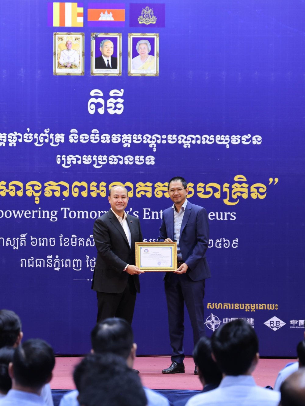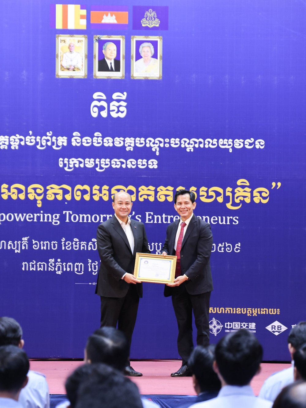 ប្រធានក្រុមប្រឹក្សាពិគ្រោះយោបល់ធុរកិច្ចអាស៊ានសម្រាប់កម្ពុជា និង សមាជិក សភាពាណិជ្ជកម្មកម្ពុជា បានអញ្ជើញចូលរួមជាភ្ញៀវកិត្តិយស ក្នុង ពិធីប្រកួតវគ្គផ្តាច់ព្រ័ត្រ និងបិទវគ្គបណ្តុះបណ្តាលយុវជនក្រោមប្រធានបទ “ជំរុញអានុភាពអនាគតសហគ្រិន” ក្រោមអធិបតីភាពដ៏ខ្ពង់ខ្ពស់ ឯកឧត្តម ហ៊ុន ម៉ានី ឧបនាយករដ្ឋមន្ត្រី រដ្ឋមន្ត្រីក្រសួងមុខងារសាធារណៈ និងជាប្រធានសហភាពសហព័ន្ធយុវជនកម្ពុជា។