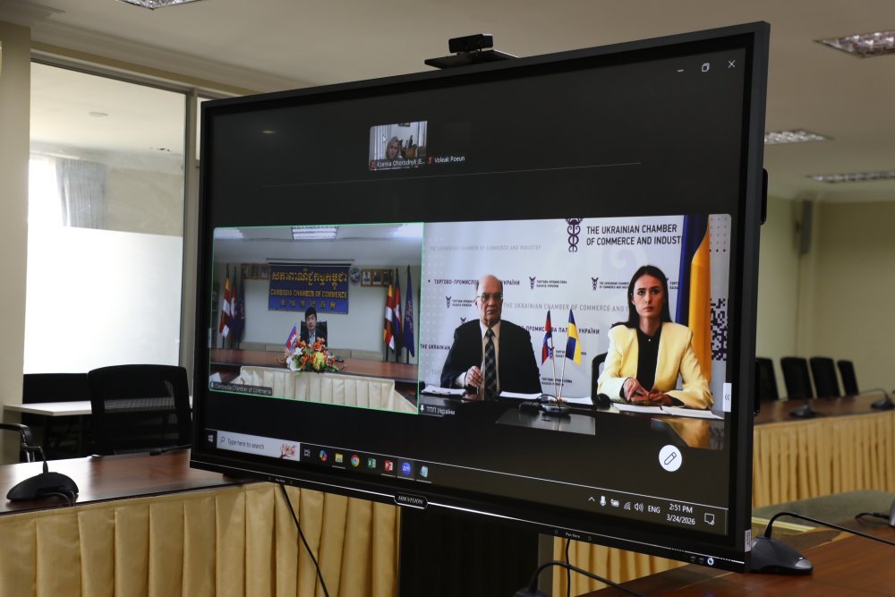 រាជធានីភ្នំពេញ៖ នារសៀលថ្ងៃអង្គារ ៦កើត ខែចេត្រ ឆ្នាំម្សាញ់ សប្តស័ក ពុទ្ធសករាជ ២៥៦៩ ត្រូវនឹងថ្ងៃទី២៤ ខែមីនា ឆ្នាំ២០២៦ ឧកញ៉ា សុខ ពិសិដ្ឋ អនុប្រធានសភាពាណិជ្ជកម្មកម្ពុជា តំណាង អ្នកឧកញ៉ា គិត ម៉េង ប្រធានសភាពាណិជ្ជកម្មកម្ពុជា និងជាប្រធានក្រុមប្រឹក្សាពិគ្រោះយោបល់ធុរកិច្ចអាស៊ានសម្រាប់កម្ពុជា បានចុះហត្ថលេខាលើអនុស្សរណៈនៃការយោគយល់គ្នា ជាមួយសភាពាណិជ្ជកម្ម និងឧស្សាហកម្មអ៊ុយក្រែនដែលតំណាងដោយលោក វ៉ាឡឺរី កូរ៉ូល (Valeriy Korol) អនុប្រធានសភាពាណិជ្ជកម្ម និងឧស្សាហកម្មអ៊ុយក្រែន ។ ពិធីចុះអនុស្សរណៈនៃការយោគយល់គ្នានេះ ប្រព្រឹត្តតាមរយៈប្រព័ន្ធអនឡាញ ហេីយក៏មានការចូលរួមពី ឧកញ៉ា គួច ផេង អនុប្រធានសភាពាណិជ្ជកម្មកម្ពុជា រួមនិងលេខាធិការដ្ឋាននៃសភាពាណិជ្ជកម្មកម្ពុជា និងខាងភាគីអ៊ុយក្រែន មានការចូលរួមពីលោកស្រី ក្សេនីយ៉ា អូហូរ៉ូដនីក (Kseniia Ohorodnyk) ប្រធានផ្នែកពាណិជ្ជកម្ម និងសេដ្ឋកិច្ចនៃស្ថានទូតអ៊ុយក្រែនប្រចាំព្រះរាជាណាចក្រកម្ពុជា ដែលមាននិវេសនដ្ឋាននៅប្រទេសវៀតណាម។