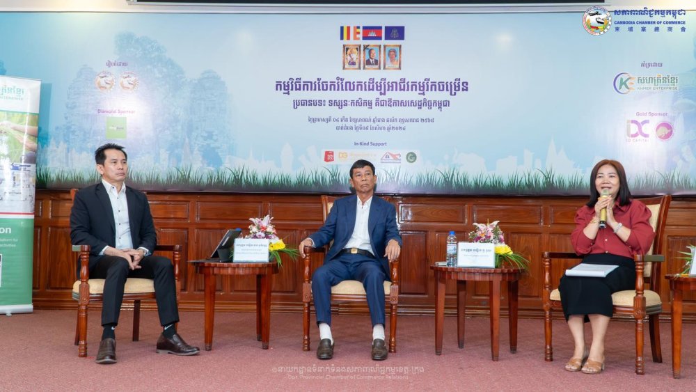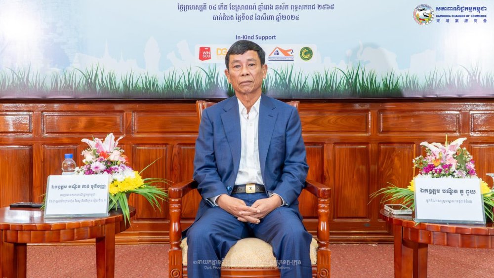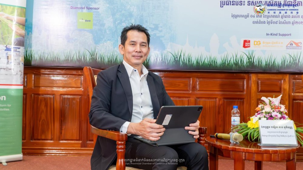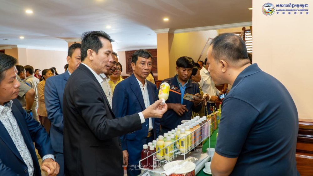 (ខេត្តបាត់ដំបង)៖ នាព្រឹកថ្ងៃព្រហស្បតិ៍ ទី០៨ ខែសីហា ឆ្នាំ២០២៤ ក្រោមការគាំទ្រដោយ សហគ្រិនខ្មែរ និងដៃគូសហការនានា សភាពាណិជ្ជកម្មកម្ពុជា រួមជាមួយ សភាពាណិជ្ជកម្មខេត្តបាត់ដំបង បានរៀបចំកម្មវិធីការចែករំលែកដើម្បីអាជីវកម្មរីកចម្រើន ក្រោមប្រធានបទ «ទស្សនកសិកម្ម គឺជាឱកាសសេដ្ឋកិច្ចកម្ពុជា» ក្នុងគោលបំណងឱ្យសមាជិក សមាជិកា និងបងប្អូនអាជីវករ បានជួបជុំសិក្សាស្វែងយល់ពីឱកាសអាជីវកម្មក្នុងខេត្តបាត់ដំបង និងផ្លាស់ប្ដូរបទពិសោធន៍គ្នាទៅវិញទៅមក ដើម្បីទទួលបានគំនិតថ្មីៗយកទៅអភិវឌ្ឍន៍អាជីវកម្មរបស់ខ្លួន។