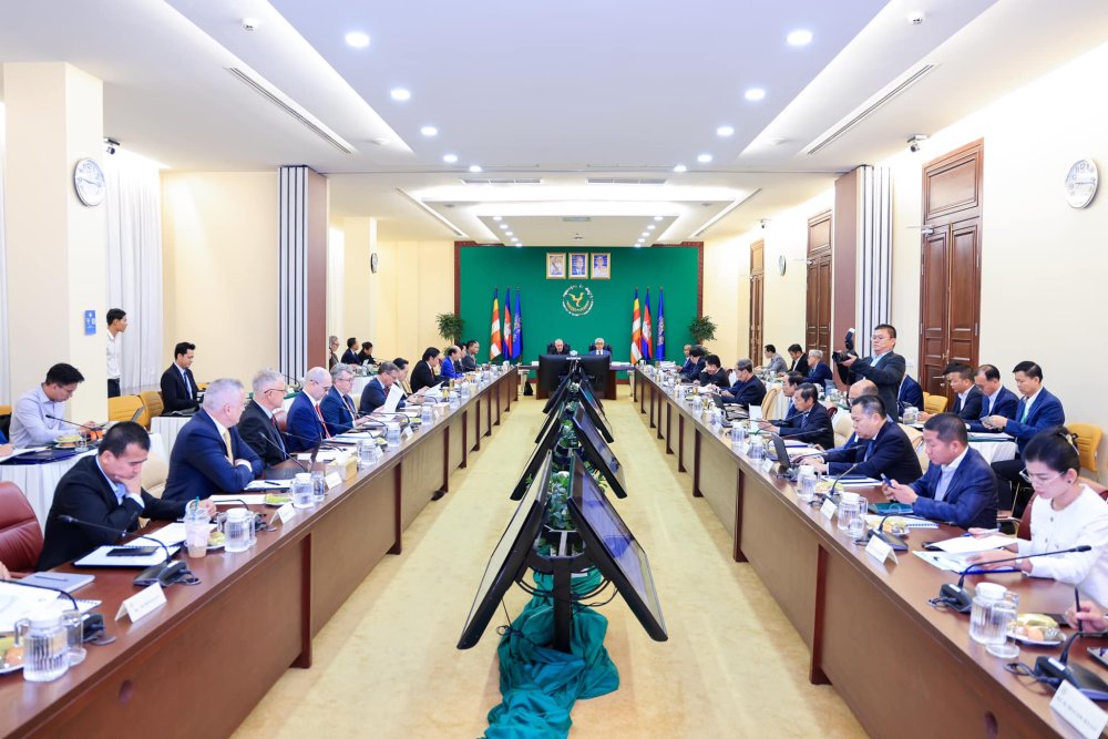 ថ្ងៃចន្ទ ៥កើត ខែអស្សុជ ឆ្នាំរោង ឆស័ក ព.ស ២៥៦៨ ត្រូវនឹងថ្ងៃទី៧ ខែតុលា ឆ្នាំ២០២៤ វេលាម៉ោង ០៩:០០នាទីព្រឹក នាក្រសួងសេដ្ឋកិច្ច និងហិរញ្ញវត្ថុ អ្នកឧកញ៉ា គិត ម៉េង ប្រធានសភាពាណិជ្ជកម្មកម្ពុជា និងជាប្រធានសម្របសម្រួលក្រុមការងារទាំង១៦ ផ្នែកឯកជន បានអញ្ជើញចូលរួមកិច្ចប្រជុំក្រុមការងារ “ឃ” “ផ្នែកនីតិកម្ម ពន្ធដារ និងអភិបាលកិច្ច” នៃវេទិការាជរដ្ឋាភិបាល-ផ្នែកឯកជន តាមរយៈការចូលរួមដោយផ្ទាល់ និងតាមប្រព័ន្ធអនឡាញហ្ស៊ូម (ZOOM) ក្រោមអធីបតីភាព ឯកឧត្តមអគ្គបណ្ឌិតសភាចារ្យ អូន ព័ន្ធមុនីរ័ត្ន ឧបនាយករដ្ឋមន្ត្រី រដ្ឋមន្ត្រីក្រសួងសេដ្ឋកិច្ច និងហិរញ្ញវត្ថុ និងជាសហប្រធានក្រុមការងារ “ឃ” តំណាងផ្នែករដ្ឋាភិបាល និងវត្តមាន លោក អានូដ ដាក សហប្រធានក្រុមការងារ “ឃ” តំណាងផ្នែកឯកជន។ កិច្ចប្រជុំនេះក៏មានការចូលរួមផងដែរពីសំណាក់មន្ត្រីពាក់ព័ន្ធ នៃក្រសួងសេដ្ឋកិច្ច និងហិរញ្ញវត្ថុ, អគ្គនាយកដ្ឋានពន្ធដារ, អគ្គនាយកដ្ឋានគយ និងរដ្ឋាករកម្ពុជា, ក្រសួងរ៉ែនិងថាមពល និងតំណាងក្រសួងស្ថាប័នពាក់ព័ន្ធនឹងក្រុមការងារ និងសមាជិក សមាជិកានៃក្រុមកាងារផ្នែកឯកជនជាច្រើនដែលបានចូលរួមពីចម្ងាយតាមរយៈហ្សូម (ZOOM) ។