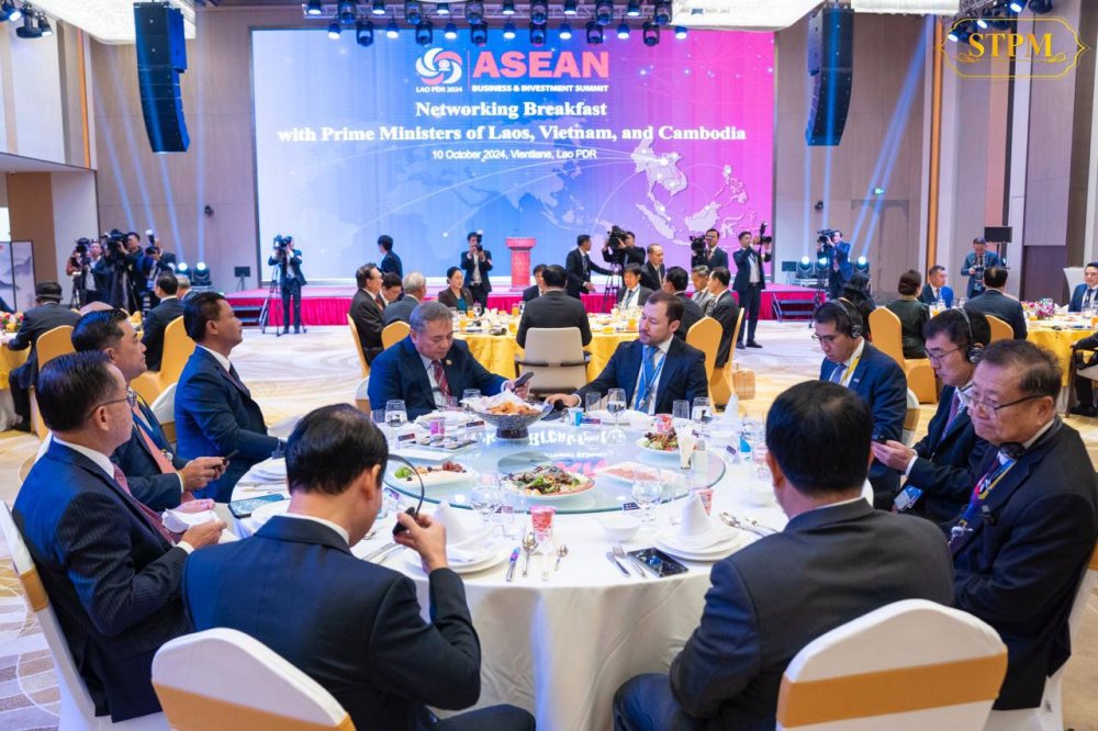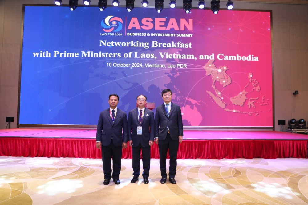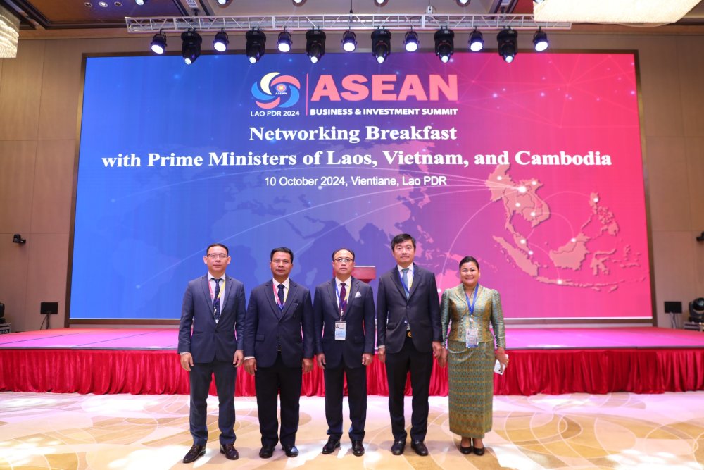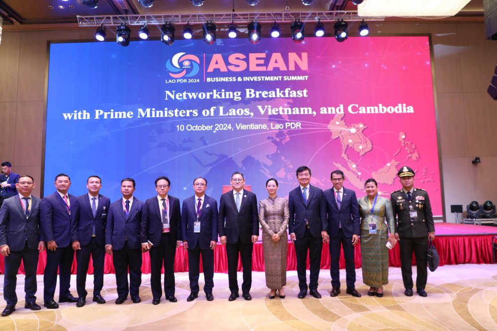 រដ្ឋធានីវៀងចន្ទន៍៖ នាព្រឹកព្រហស្បតិ៍ ៨កើត ខែអស្សុជ ឆ្នាំរោង ឆស័ក ព.ស ២៥៦៨ ត្រូវនឹងថ្ងៃទី១០ ខែតុលា ឆ្នាំ២០២៤ អ្នកឧកញ៉ា គិត ម៉េង ប្រធានសភាពាណិជ្ជ​កម្ម​កម្ពុជា​និងជាប្រធានក្រុមប្រឹក្សាពិគ្រោះយោបល់ធុរកិច្ចអាស៊ានសម្រាប់កម្ពុជា អញ្ជើញចូលរួម និងថ្លែងសុន្ទរកថា កម្មវិធីអាហារពេលព្រឹក​ស្វែងរក​ដៃគូ​នៃ​កិច្ចប្រជុំ​កំពូល​ធុរកិច្ចនិងវិនិយោគអាស៊ានឆ្នាំ២០២៤។