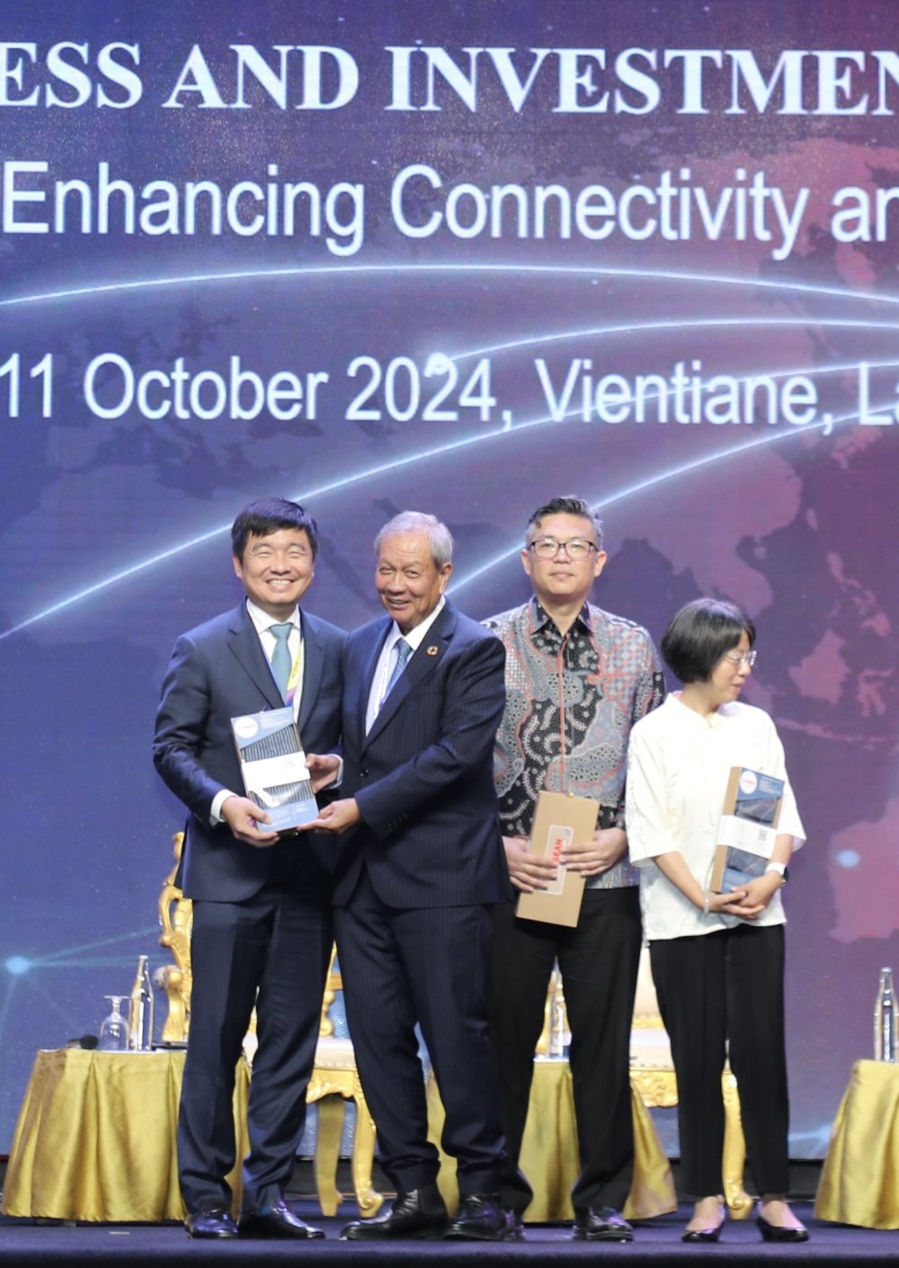 រដ្ឋធានីវៀងចន្ទន៍៖ នាព្រឹកថ្ងៃព្រហស្បតិ៍ ៨កើត ខែអស្សុជ ឆ្នាំរោង ឆស័ក ព.ស ២៥៦៨ ត្រូវនឹងថ្ងៃទី១០ ខែតុលា ឆ្នាំ២០២៤ ក្នុងឱកាសអមដំណើរ សម្តេចមហាបវរធិបតី ហ៊ុន ម៉ាណែត នាយករដ្ឋមន្ត្រីនៃព្រះរាជាណាចក្រកម្ពុជា ចូលរួមកិច្ចប្រជុំកំពូលអាស៊ានលើកទី៤៤ និង៤៥ និងកិច្ចប្រជុំកំពូលពាក់ព័ន្ធ នៅទៅរដ្ឋធានីវៀងចន្ទន៍ ប្រទេសឡាវ ឧកញ៉ា សុខ ពិសិដ្ឋ អនុប្រធានសភាពាណិជ្ជកម្មកម្ពុជា និងជាសមាជិកក្រុមប្រឹក្សាពិគ្រោះយោបល់ធុរកិច្ចអាស៊ានសម្រាប់កម្ពុជា តំណាង អ្នកឧកញ៉ា គិត ម៉េង ប្រធានសភាពាណិជ្ជកម្មកម្ពុជា និងជាប្រធានក្រុមប្រឹក្សាពិគ្រោះយោបល់ធុរកិច្ចអាស៊ានសម្រាប់កម្ពុជា បានចូលរួមជាវាគ្មិនកិត្តិយស ដើម្បីពិភាក្សាលើប្រធានបទ «ការជំរុញការតភ្ជាប់អាស៊ាន-ចិន តាមរយៈប្រព័ន្ធបច្ចេកវិទ្យា» នៅក្នុងកំឡុងពេលនៃកិច្ចប្រជុំកំពូលធុរកិច្ចនិងវិនិយោគអាស៊ានឆ្នាំ២០២៤។