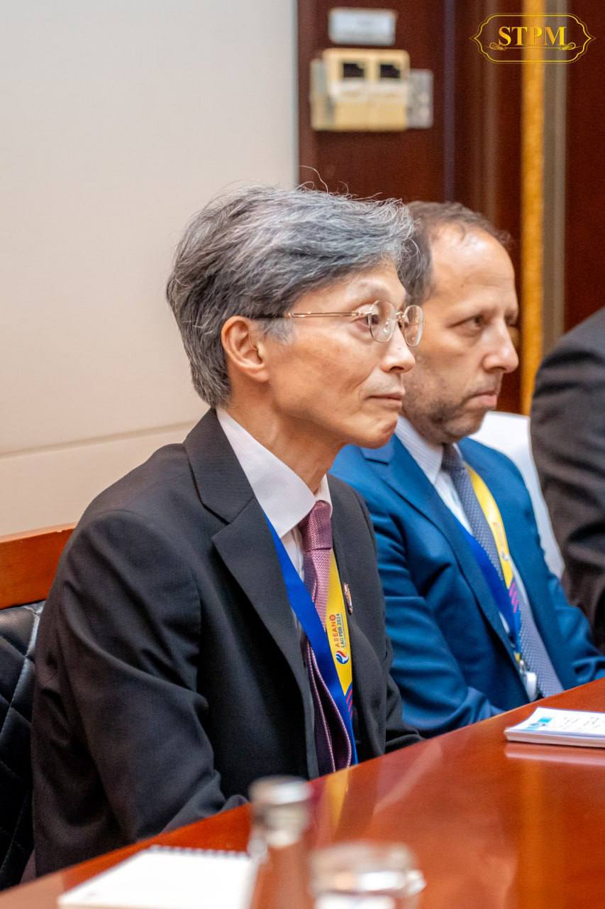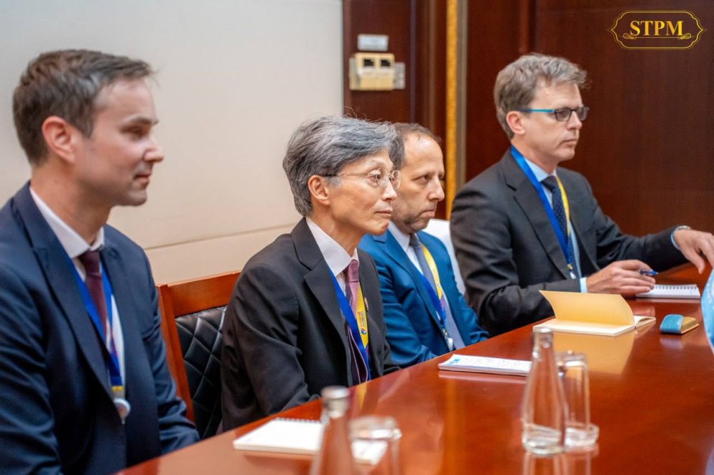រដ្ឋធានីវៀងចន្ទន៍៖ នាល្ងាចថ្ងៃពុធ ៧កើត ខែអស្សុជ ឆ្នាំរោង ឆស័ក ព.ស ២៥៦៨ ត្រូវនឹងថ្ងៃទី៩ ខែតុលា ឆ្នាំ២០២៤ អ្នកឧកញ៉ា គិត ម៉េង ប្រធានសភាពាណិជ្ជកម្មកម្ពុជា និង ជាប្រធានក្រុមប្រឹក្សាពិគ្រោះយោបល់ធុរកិច្ចអាស៊ាន អញ្ជើញអមដំណើរ សម្តេចមហាបវរធិបតី ហ៊ុន ម៉ាណែត នាយករដ្ឋមន្ត្រីនៃព្រះរាជាណាចក្រកម្ពុជា ក្នុងជំនួបសម្តែងការគួរសម និងពិភាក្សាការងារដោយ ឯកឧត្តម Kenji Okamura អនុប្រធានគ្រប់គ្រងនៃមូលនិធិរូបិយវត្ថុអន្តរជាត(IMF)។