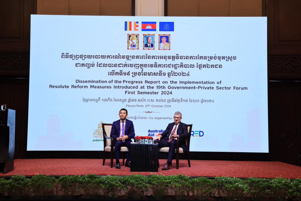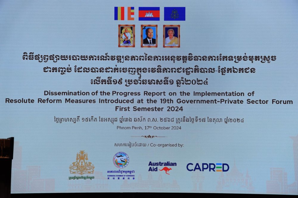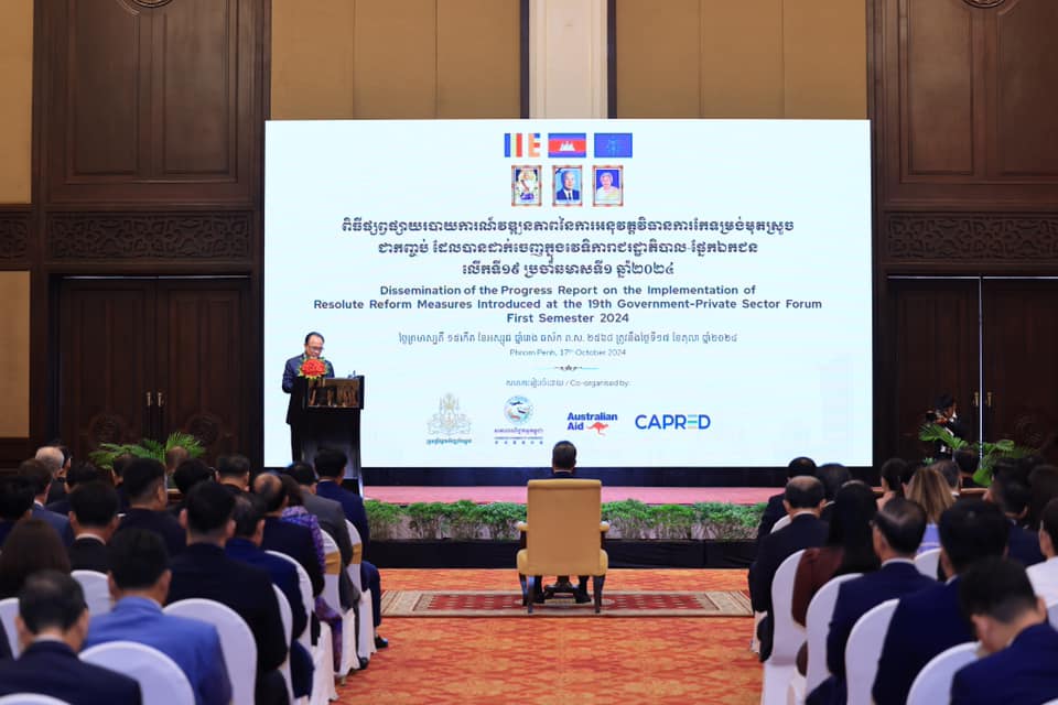 ពិធីផ្សព្វផ្សាយរបាយការណ៍វឌ្ឍនភាពនៃការអនុវត្តវិធានការកែទម្រង់មុតស្រួចជាកញ្ចប់ដែលបានដាក់ចេញក្នុងវេទិការាជរដ្ឋាភិបាល-ផ្នែកឯកជនលើកទី១៩ ប្រចាំឆមាសទី១ ឆ្នាំ២០២៤