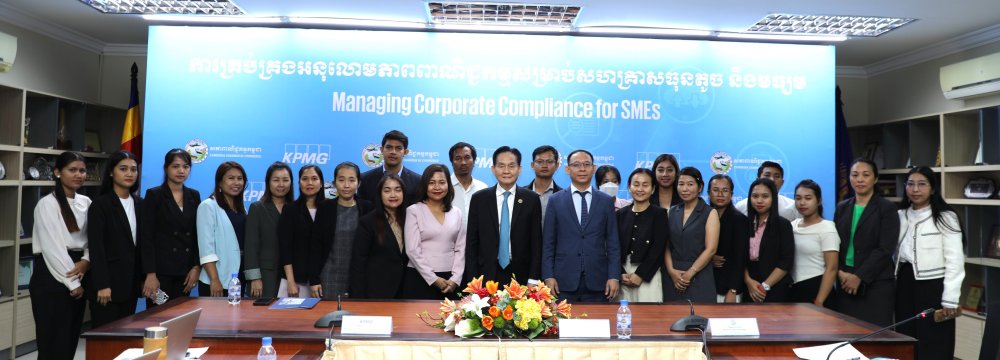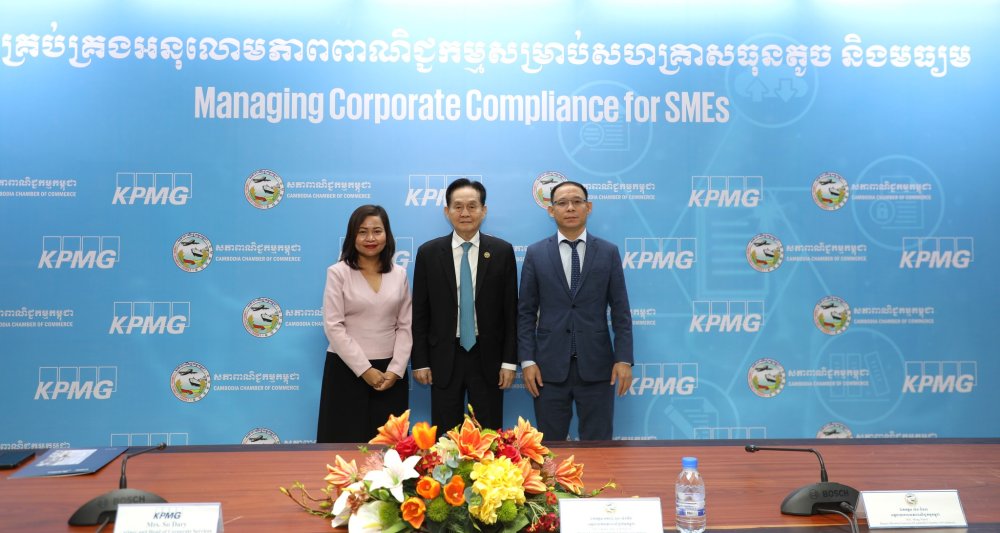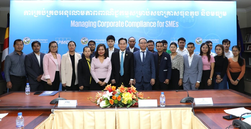 រាជធានីភ្នំពេញ៖ នាព្រឹកថ្ងៃព្រហ្បតិ៍ ១៥កើត ខែអស្សុជ ឆ្នាំរោង ឆស័ក ព.ស ២៥៦៨ ត្រូវនឹងថ្ងៃទី១៧ ខែតុលា ឆ្នាំ២០២៤ ឯកឧត្តម ឧកញ៉ា ងួន ម៉េងតិច អគ្គនាយកសភាពាណិជ្ជកម្មកម្ពុជា អញ្ជើញចូលរួមជាគណៈអធិបតីក្នុងពិធីបើកសិក្ខាសាលាស្តីពី ការគ្រប់គ្រងអនុលោមភាពពាណិជ្ជកម្មសម្រាប់សហគ្រាសធុនធុនតូច និងមធ្យម ដែលសហការរៀបចំដោយសភាពាណិជ្ជកម្មកម្ពុជា និង ក្រុមហ៊ុន ខេ ភី ម ជ្ជី ខេមបូឌា (KPMG Cambodia) និងមានការអញ្ជើញចូលរួមពីសមាជិកសមាជិកាសភាពាណិជ្ជកម្មកម្ពុជា សរុបជាង ៥០នាក់។
