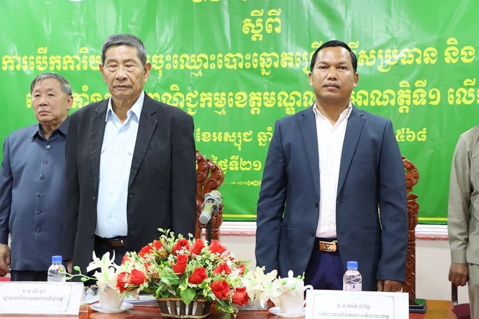 (មណ្ឌលគិរី)៖នាព្រឹកថ្ងៃទី២១ ខែតុលា ឆ្នាំ២០២៤ នៅសណ្ឋាគារ ពេជ្រដា ខេត្តមណ្ឌលគិរីបានរៀបចំកិច្ចប្រជុំផ្សព្វផ្សាយបើកការិយាល័យចុះឈ្មោះបោះឆ្នោតជ្រើសរើសសមាជិកជ្រើសតាំងនិងប្រធានសភាពាណិជ្ជកម្មខេត្តមណ្ឌលគិរីអាណត្តទី១ លើកទី១ ក្រោមអធិបតីភាពឯកឧត្តម ម៉ៅ ថូរ៉ា រដ្ឋលេខាធិកាក្រសួងពាណិជ្ជកម្ម និងឯកឧត្តម សាន់ ដារិទ្ធ អភិបាលរងនៃគណៈអភិបាលខេត្តមណ្ឌលគិរី ដោយមានការចូលរួមពីពាណិជ្ជករ អាជីវករក្នុងខេត្តប្រមាណ១០០នាក់។