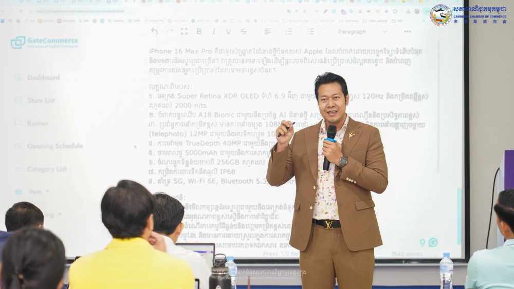 សភាពាណិជ្ជកម្មកម្ពុជា សហការជាមួយក្រុមហ៊ុន Codingate Technology បានរៀបចំវគ្គបណ្តុះបណ្តាល ដោយផ្ដោតលើ “ជំនាញក្នុងការបង្កើត និងរៀបចំហាងលក់ទំនិញអនឡាញ (E-commerce)” រយៈពេល ០២ថ្ងៃ ជូនដល់ពាណិជ្ជករ អាជីវករ និងសមាជិកទាំងអស់ ដែលជាម្ចាស់សហគ្រាសធុនតូច និងមធ្យម។