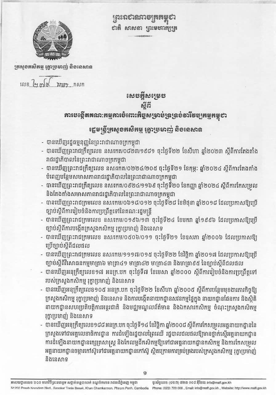 គួរបញ្ជាក់ថា នេះគឺជាកិច្ចប្រជុំលើកដំបូងរបស់គណៈកម្មការចំពោះកិច្ចផ្នែកឯកជនសម្រាប់ទ្រទ្រង់វិស័យវារីវប្បកម្ម បន្ទាប់ពីមានសេចក្តីសម្រេចរបស់ក្រសួងកសិកម្ម រុក្ខាប្រមាញ់ និងនេសាទស្តីពីការបង្កើតគណៈកម្មការចំពោះកិច្ចសម្រាប់ទ្រទ្រង់វិស័យវារីវប្បកម្មនៅកម្ពុជា។