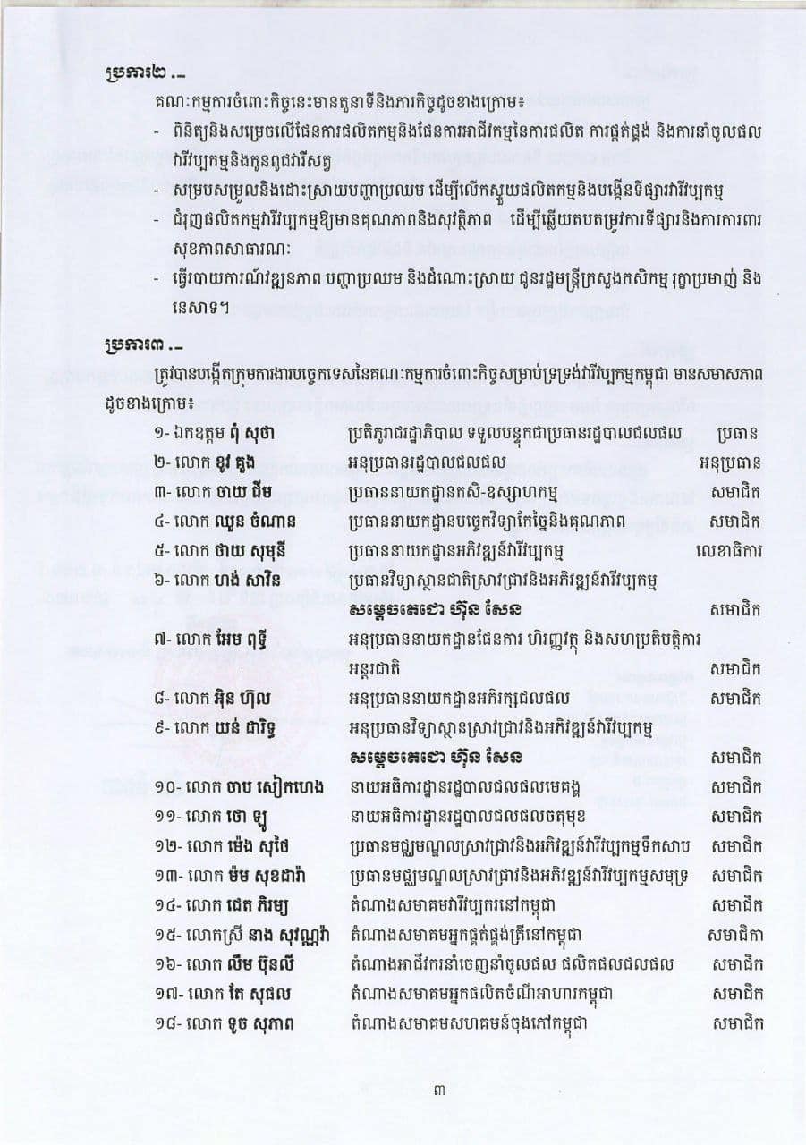 កិច្ចប្រជុំគណៈកម្មការចំពោះកិច្ចផ្នែកឯកជនសម្រាប់ទ្រទ្រង់វិស័យវារីវប្បកម្ម