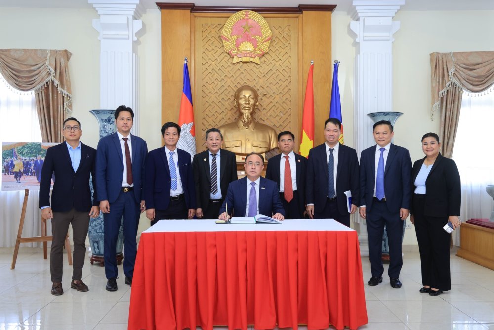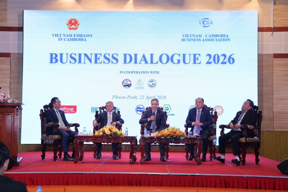 (រាជធានីភ្នំពេញ) នារសៀលថ្ងៃពុធ ៦កើត ខែពិសាខ ឆ្នាំមមី សប្តស័ក ពុទ្ធសករាជ ២៥៦៩ ត្រូវនឹងថ្ងៃទី២២ ខែមេសា ឆ្នាំ២០២៦ អ្នកឧកញ៉ា គិត ម៉េង ប្រធានសភាពាណិជ្ជកម្មកម្ពុជា និងជាប្រធានក្រុមប្រឹក្សាពិគ្រោះយោបល់ធុរកិច្ចអាស៊ានសម្រាប់កម្ពុជា បានអញ្ជើញចូលរួមថ្លែងសុន្ទរកថាក្នុង «កិច្ចសន្ទនាធុរកិច្ចកម្ពុជា-វៀតណាម ឆ្នាំ២០២៦» ដែលសហការរៀបចំដោយស្ថានទូតនៃសាធារណរដ្ឋសង្គមនិយមវៀតណាមប្រចាំព្រះរាជាណាចក្រកម្ពុជា និងសមាគមធុរកិច្ចកម្ពុជា-វៀតណាម។ កិច្ចសន្ទនាធុរកិច្ចនេះ មានការអញ្ជើញចូលរួមដោយ ឯកឧត្តម Nguyen Minh Vu ឯកអគ្គរដ្ឋទូតវិសាមញ្ញ និងពេញសមត្ថភាពនៃប្រទេសវៀតណាមប្រចាំកម្ពុជា, ឯកឧត្តម ជា វុទ្ធី អគ្គលេខាធិការនៃគណៈកម្មាធិការវិនិយោគកម្ពុជានៃក្រុមប្រឹក្សាអភិវឌ្ឍន៍កម្ពុជា, ឯកឧត្តម ហូ ស៊ីវយ៉ុង ប្រតិភូរាជរដ្ឋាភិបាលកម្ពុជាទទួលបន្ទុកជាអគ្គនាយកសេវាពាណិជ្ជកម្មនៃក្រសួងពាណិជ្ជកម្ម និងឧកញ៉ា ឡេង ឬទ្ធី ប្រធានសមាគមធុរកិច្ចកម្ពុជា-វៀតណាម, សមាជិក សមាជិកា សភាពាណិជ្ជកម្មកម្ពុជា និងធុរជននៃប្រទេសទាំងពីរជាច្រើន។