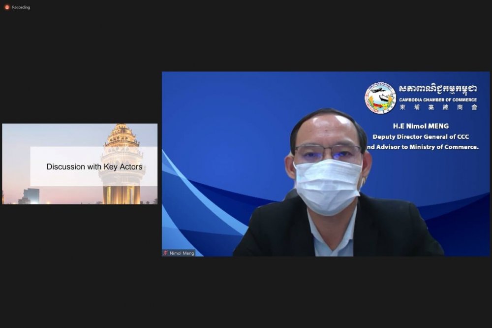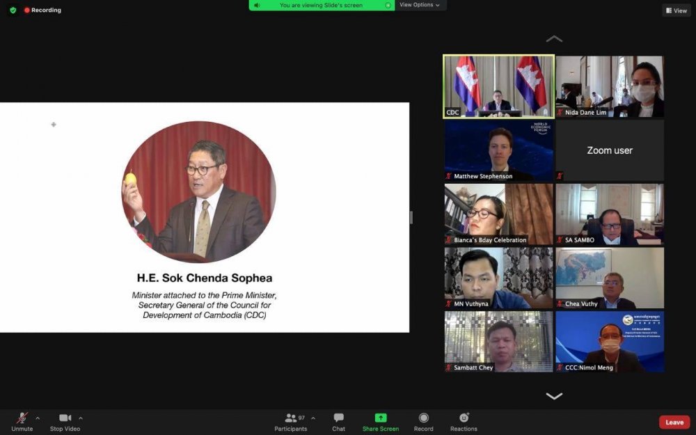 On Wednesday May 12 , 2021 H.E Nimol Meng, Deputy Director of Cambodia Chamber of Commerce(CCC), representative of H.E Oknha Nguon Mengtech, Director General of CCC, attended the Virtual Launch of CDC’s Supplier Database with Sustainable Dimensions. The event was presided by H.E Sok Chenda Sophea, Minister attached to the Prime Minister, Secretary General of the Council for the Development of Cambodia (CDC) in cooperation with the World Economic Forum and participation from representatives from private sector and public institutions.