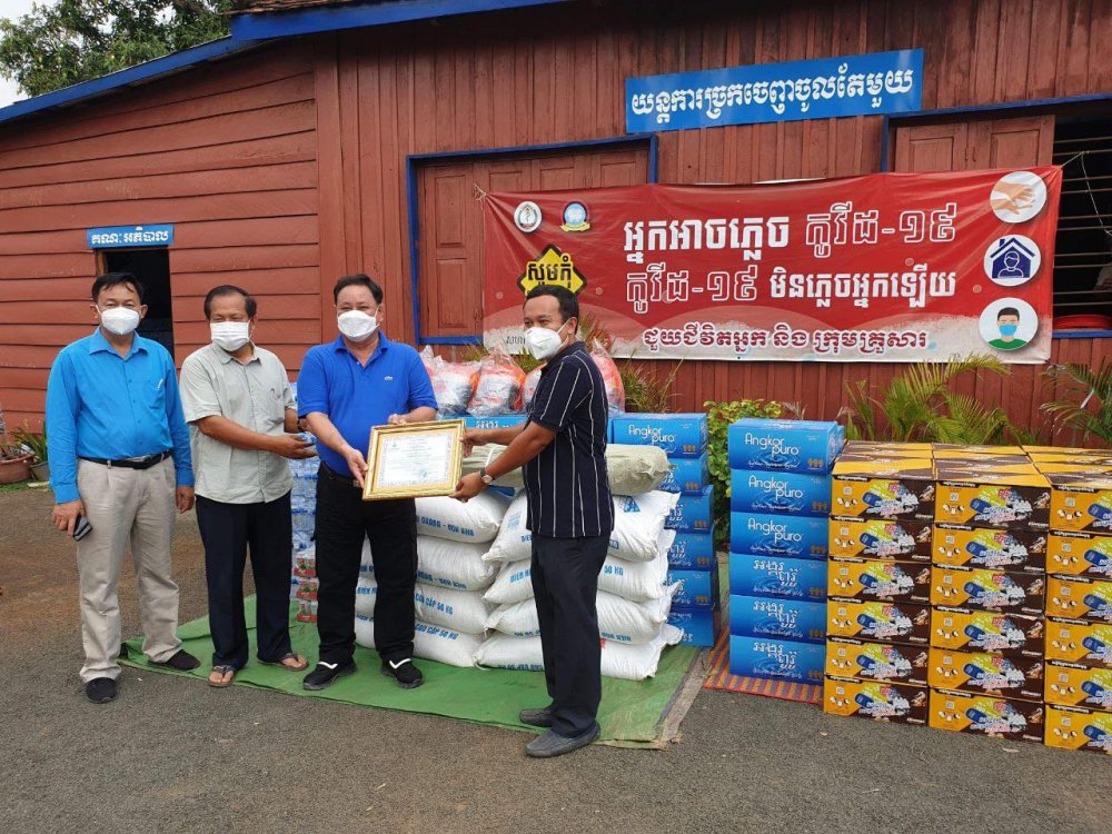 ទី ២ បានឧបត្ថម្ភជូនលោក អួង សារឿន អភិបាលស្រុកបារាយណ៍ ដែលមានដូចជាអង្ករចំនួន ៦០០ គីឡូក្រាមភេសជ្ជៈ ៩០ កេស ទឹកបរិសុទ្ធអង្គរពូរ៉ូចំនួន ៥០ កេស ទឹកបរិសុទ្ធធម្មតាចំនួន ១០០ យួរ ប្រេងម៉ាស៊ូតចំនួន ៣០ លីត្រ ឆ័ត្រធំចំនួន ៥ មួកសុវត្ថិភាពចំនួន ៥ នឹងសាប៊ូចំនួន ៥ ប្រអប់ ។