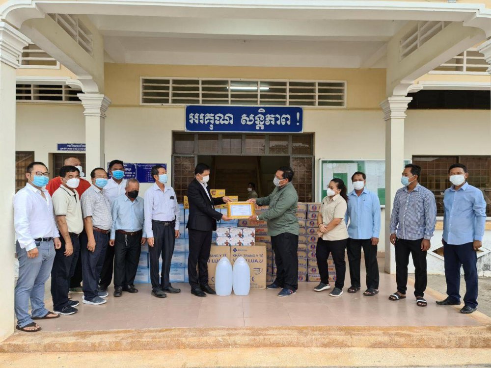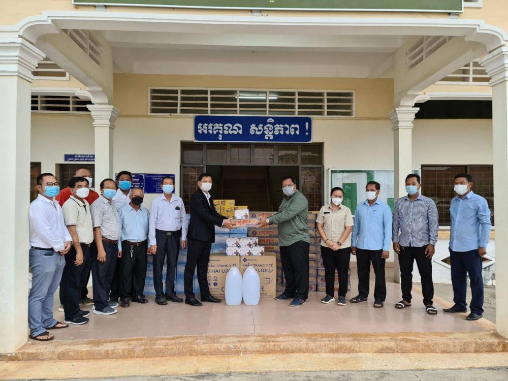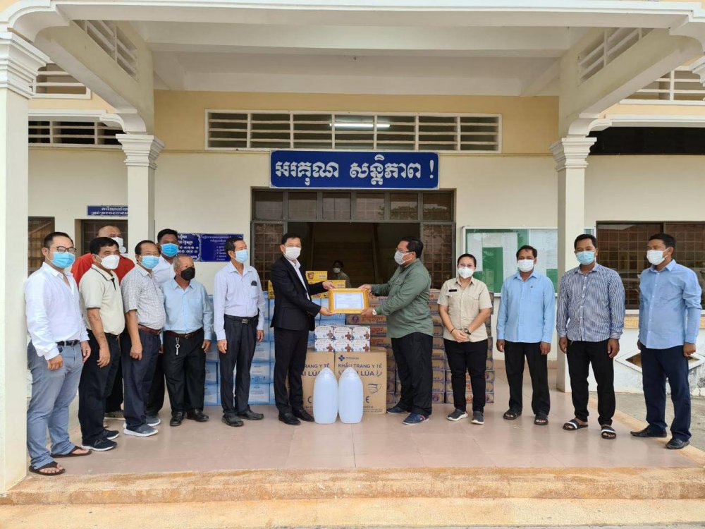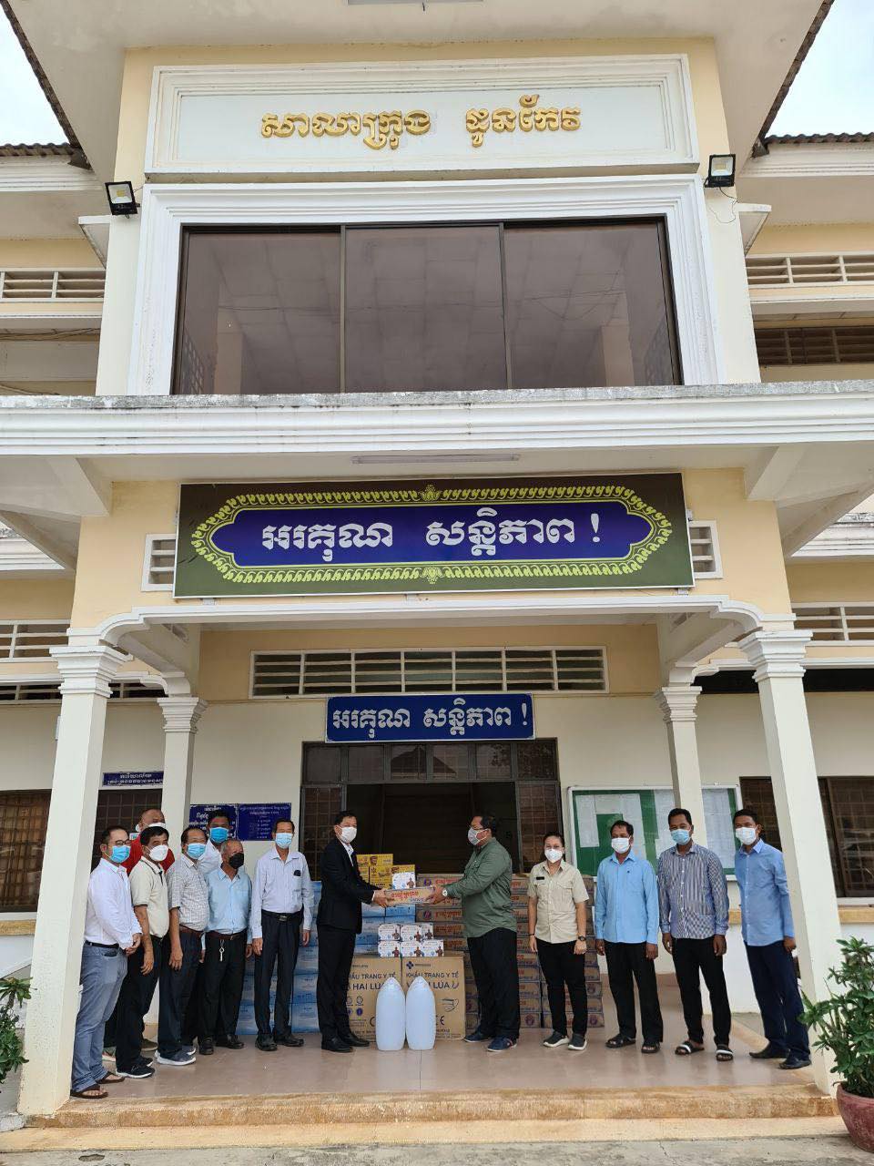 លោក ជីប ភក្តីភាព អនុប្រធានសភាពាណិជ្ជកម្មកម្ពុជា និងជាប្រធានសភាពាណិជ្ជកម្មខេត្តតាកែវ បាននាំយកគ្រឿងឧបភោគបរិភោគមួយចំនួនជូន លោក កង អាណាន់ អភិបាល នៃគណៈអភិបាលក្រុងដូនកែវ ដើម្បីរួមចំណែកក្នុងការប្រយុទ្ធប្រឆាំងការរីករាលដាលនៃជំងឺកូវីដ១៩