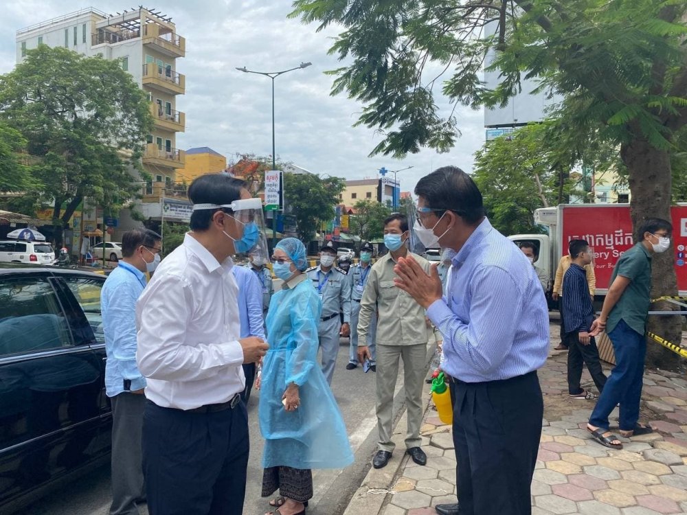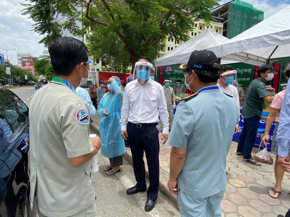 យោងតាមសេចក្ដីណែនាំដ៏ខ្ពង់ខ្ពស់របស់ប្រមុខរាជរដ្ឋាភិបាល ដែលឱ្យក្រសួងពាណិជ្ជកម្ម រៀបចំសម្របសម្រួលផ្គត់ផ្គង់ស្បៀង និងគ្រឿងឧបភោគបរិភោគចាំបាច់លក់ជូនប្រជាពលរដ្ឋរស់នៅក្នុងតំបន់ក្រហម ខណៈពេលនៃការបិទខ្ទប់នេះ នៅព្រឹកថ្ងៃទី២៣ ខែមេសា ឆ្នាំ២០២១ ឯកឧត្តម ប៉ាន សូរស័ក្តិ រដ្ឋមន្ត្រីក្រសួងពាណិជ្ជកម្ម បានចុះពិនិត្យស្តង់លក់ស្បៀង និងគ្រឿងឧបភោគបរិភោគ ជូនប្រជាពលរដ្ឋដែលកំពុងជាប់ក្នុងតំបន់បិទខ្ទប់ នៅភូមិសាស្ត្ររាជធានីភ្នំពេញ។
