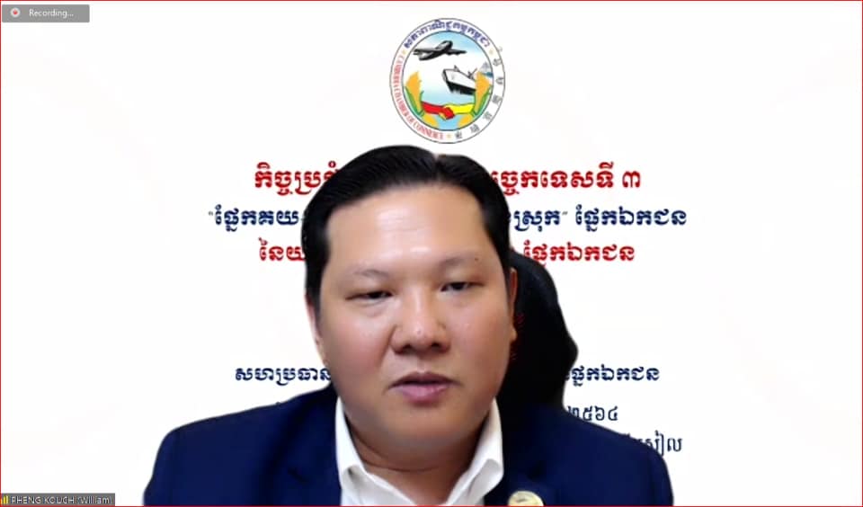 ថ្ងៃពុធ ៥រោច ខែផល្គុន ឆ្នាំជូត ទោស័ក ព.ស ២៥៦៤ ត្រូវនឹងថ្ងៃទី០៣ ខែមីនា ឆ្នាំ២០២១ វេលាម៉ោង ០២:៣០ នាទីរសៀល មានរៀបចំកិច្ចប្រជុំក្រុមការងារបច្ចេកទេសទី៣ “ផ្នែកគយ-ធុរកិច្ចបម្រើទីផ្សារក្នុងស្រុក” ផ្នែកឯកជន នៃយន្តការភាពជាដៃគូគយ-ផ្នែកឯកជន តាមប្រព័ន្ធវីដេអូ Zoom ក្រោមអធិបតីភាព ឧកញ៉ា គួច ផេង សហប្រធានក្រុមការងារបច្ចេកទេសទី៣ “ផ្នែកគយ-ធុរកិច្ចបម្រើទីផ្សារក្នុងស្រុក” ផ្នែកឯកជន។ កិច្ចប្រជុំនេះមានការចូលរួមផងដែរពីសំណាក់ ឯកឧត្តម ឧកញ៉ា ងួន ម៉េងតិច អគ្គនាយកសភាពាណិជ្ជកម្មកម្ពុជា និងវត្តមានសមាជិក សមាជិកាសភាពាណិជ្ជកម្មកម្ពុជា តំណាងក្រុមហ៊ុនឯកជន តំណាងសភាពាណិជ្ជកម្មអឺរ៉ុប និងសមាជិក សមាជិកាក្រុមការងារបច្ចេកទេសជាច្រើនរូបទៀតផងដែរ។