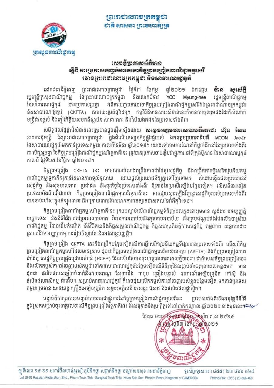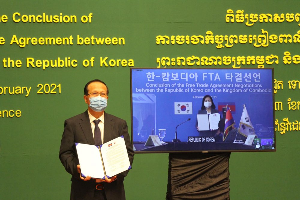 ពិធីប្រកាសបញ្ចប់ការចរចារកិច្ចព្រមព្រៀងពាណិជ្ជកម្មសេរីរវាងព្រះរាជាណាចក្រកម្ពុជា និង សាធារណរដ្ឋកូរ៉េ