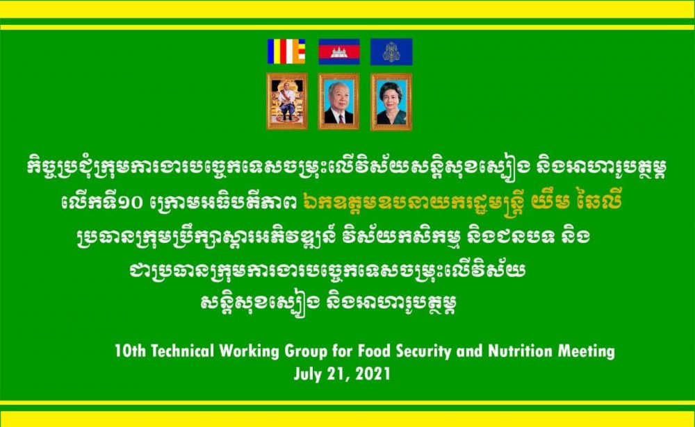 នាព្រឹកថ្ងៃពុធ ១២កើត ខែទុតិយាសាឍ ឆ្នាំឆ្លូវ ត្រីស័ក ព.ស ២៥៦៥ ត្រូវនឹងថ្ងៃទី២១ ខែកក្កដា ឆ្នាំ២០២១ ឯកឧត្តម ឧកញ៉ា ងួន ម៉េងតិច បានអញ្ជើញចូលរួមកិច្ចប្រជុំក្រុមការងារបច្ចេកទេសចម្រុះលើវិស័យសន្តិសុខស្បៀង និងអាហារូបត្ថម្ភ លើកទី១០ ដែលប្រព្រឹត្តទៅតាមប្រព័ន្ធវីដេអូ ក្រោមអធិបតីភាព ឯកឧត្តមឧបនាយករដ្ឋមន្ត្រី យឹម ឆៃលី ប្រធានក្រុមប្រឹក្សាស្តារអភិវឌ្ឍន៍វិស័យកសិកម្ម និងជនបទ និងជាប្រធានក្រុមការងារបច្ចេកទេសចម្រុះលើវិស័យសន្តិសុខស្បៀង និងអាហារូបត្ថម្ភ ។