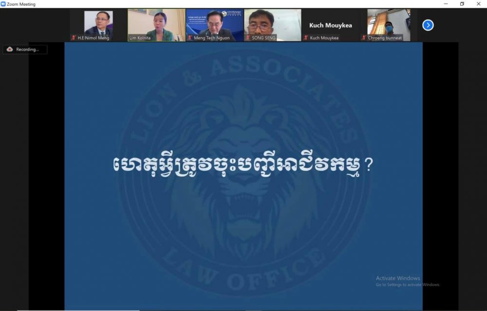 នាព្រឹកថ្ងៃព្រហស្បតិ៍ ២ រោច ខែភទ្របទ ឆ្នាំឆ្លូវ ត្រីស័ក ព.ស ២៥៦៥ ត្រូវនឹងថ្ងៃទី២៣ ខែកញ្ញា ឆ្នាំ២០២១ សភាពាណិជ្ជកម្មកម្ពុជា បានរៀបចំកម្មវិធីសិក្ខាសាលាតាមប្រព័ន្ធវីដេអូ ស្តីពី«ការចុះបញ្ជីអាជីវកម្មតាមថ្នាលបច្ចេកវិទ្យាព័ត៌មាន» ក្រោមអធិបតីភាពរបស់ ឯកឧត្តម ឧកញ៉ា ងួន ម៉េងតិច អគ្គនាយកសភាពាណិជ្ជកម្មកម្ពុជា។ គោលបំណងនៃសិក្ខាសាលានេះ គឺដើម្បីផ្សព្វផ្សាយនិងផ្ដល់ចំណេះដឹងអំពីសារៈប្រយោជន៍នៃការចុះបញ្ជីអាជីវកម្ម តាមថ្នាលបច្ចេកវិទ្យាព័ត៌មាន និងកាតព្វកិច្ចរបស់ម្ចាស់អាជីវកម្មក្រោយពេលចុះបញ្ជីពាណិជ្ជកម្មរួចរាល់។