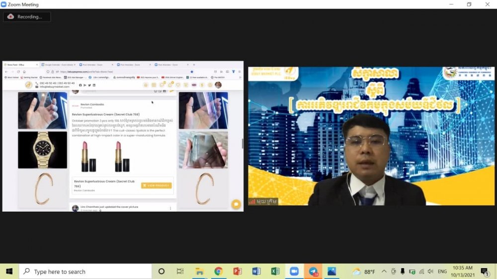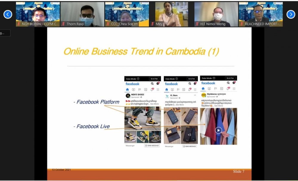 On October 13, 2021 Cambodia Chamber of Commerce organized a virtual workshop on Business Development in Digital Era which was presided over by H.E Oknha Nguon Mengtech, Director General of Cambodia Chamber of Commerce. The purpose of the workshop was to raise awareness about the new context of business expansion through the increased and rapid online selling in accordance with digital era such as the creation of online market and stores which are considered as new knowledge for the development in SME sector.