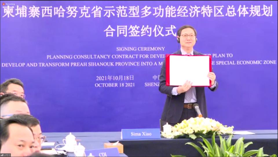 Signing Ceremony On the service contract for preparing masterplan to develop and transform Sinhanoukville to a Special Economic Zone Multi-Purpose Model Between Ministry of Economy and Finance (MOEF) And Shenzhen Urban Planning and Design Institute, Shihanoukville (UPDIS)
