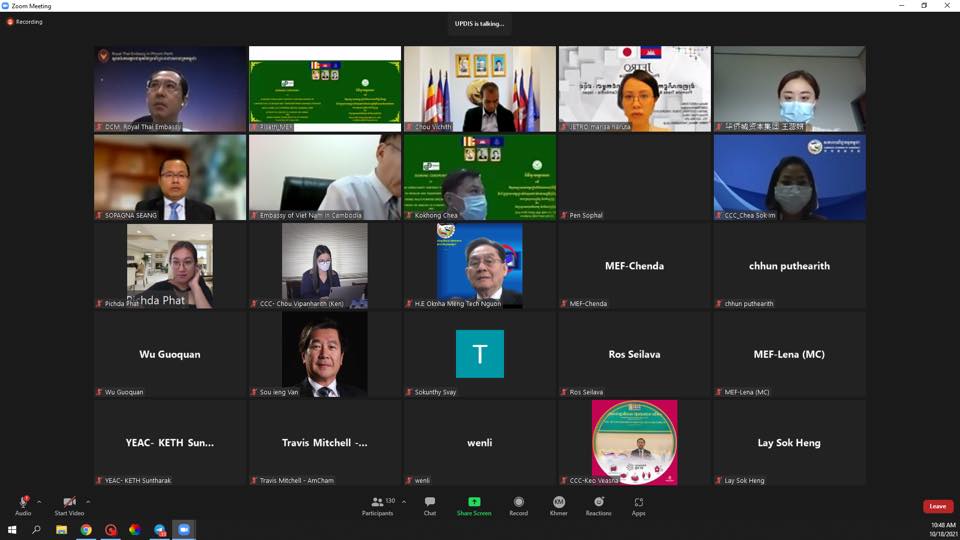 អ្នកឧកញ៉ា គិត ម៉េង ប្រធានសភាពាណិជ្ជកម្មកម្ពុជា បានដឹកនាំសមាជិកសមាជិកានៃសភាពាណិជ្ជកម្មកម្ពុជាចូលរួមពិធីចុះហត្ថលេខាលើកិច្ចសន្យាសេវាកម្មរៀបចំផែនការមេ ដើម្បីអភិវឌ្ឍ និងប្រែក្លាយខេត្តព្រះសីហានុទៅជាតំបន់សេដ្ឋកិច្ចពិសេសគំរូពហុបំណង រវាងវិទ្យាស្ថាននគរូបនីយកម្ម និងឌីសាញស៊ិនជិន (UPDIS) និងក្រសួងសេដ្ឋកិច្ច និងហិរញ្ញវត្ថុ តាមប្រព័ន្ធវីដេអូសន្និសិទ (zoom) ក្រោមអធិបតីភាពដ៏ខ្ពង់ខ្ពស់ ឯកឧត្តម អគ្គបណ្ឌិតសភាចារ្យ អូន ព័ន្ធមុនីរ័ត្ន ឧបនាយករដ្ឋមន្ត្រី រដ្ឋមន្ត្រីក្រសួងសេដ្ឋកិច្ច និងហិរញ្ញវត្ថុ និងជាប្រធានគណៈកម្មាធិការសម្របសម្រួលអន្តរក្រសួងរៀបចំផែនការមេ ដើម្បីអភិវឌ្ឍខេត្តព្រះសីហនុទៅជាតំបន់សេដ្ឋកិច្ចពិសេសគំរូពហុបំណង។ ពិធីចុះហត្ថលេខានេះក៏មានការចូលរួមផងដែពីក្រសួង ស្ថាប័ន រដ្ឋាភិបាល ដែលជាសមាជិកសមាជិកានៃគណៈកម្មាធិការនេះ ព្រមទាំងមានការចូលរួម ឯកឧត្តម ឧកញ៉ា ងួន ម៉េងតិច អគ្គនាយកសភាពាណិជ្ជកម្មកម្ពុជា និងវត្តមាន ឯកឧត្តម លោកជំទាវ អ្នកឧកញ៉ា លោកឧកញ៉ា លោក លោកស្រីតំណាងពីផ្នែកឯកជនដូចជាសមាគម និងក្រុមហ៊ុនជាតិ និងអន្តរជាតិពាក់ព័ន្ធសំខាន់ៗ ច្រើនទៀតផងដែរ។