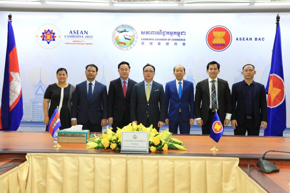 រាជធានីភ្នំពេញ៖ នាព្រឹកថ្ងៃអង្គារ ៦រោច ខែអាសាឍ ឆ្នាំខាល ចត្វាស័ក ព.ស ២៥៦៦ ត្រូវនឹងថ្ងៃទី១៩ ខែកក្កដា ឆ្នាំ២០២២ អ្នកឧកញ៉ា គិត ម៉េង ប្រធានសភាពាណិជ្ជកម្មកម្ពុជា និង ជាប្រធានក្រុមប្រឹក្សាពិគ្រោះយោបល់ធុរកិច្ចអាស៊ាន បានចូលរួមថ្លែងសុន្ទរកថា និងធ្វើបទអន្តរាគមន៍ ក្នុងអំឡុងពេលកិច្ចសន្ទនាឆ្លង
