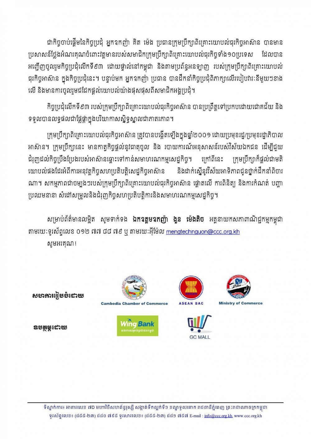 កិច្ចប្រជុំលើកទី៩៣ របស់ក្រុមប្រឹក្សាពិគ្រោះយោបល់ធុរកិច្ចអាស៊ាន បានប្រព្រឹត្តទៅប្រកបដោយជោគជ័យ និងទទួលបានលទ្ធផលជាផ្លែផ្កាក្នុងបរិយាកាសស្និទ្ធស្នាលជាភាតរភាព។