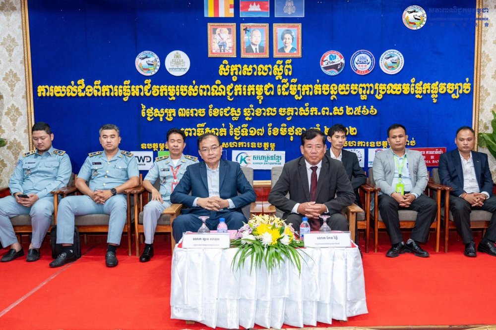 (ពោធិ៍សាត់)៖ នៅថ្ងៃសុក្រ ៣ រោច ខែ ជេស្ឋ ឆ្នាំខាល ចត្វាស័ក ព.ស ២៥៦៦ ត្រូវនឹងថ្ងៃ ទី ១៧ ខែមិថុនា ឆ្នាំ ២០២២ សិក្ខាសាលាស្តីពី«ការយល់ដឹងពីការធ្វើអាជីវកម្មរបស់ពាណិជ្ជករកម្ពុជា ដើម្បីកាត់បន្ថយបញ្ហាប្រឈមផ្នែកផ្លូវច្បាប់» បានប្រារព្វធ្វើនៅសណ្ឋាគារពោធិ៍សាត់រីវើសាយ ស្ថិតក្រោមអធិបតីភាព ឯកឧត្តម ម៉ៅ ថូរ៉ា រដ្ឋលេខាធិការក្រសួងពាណិជ្ជកម្ម តំណាងដ៏ខ្ពង់ខ្ពស់ ឯកឧត្តម ប៉ាន សូរស័ក្ត រដ្ឋមន្ត្រីក្រសួងពាណិជ្ជកម្ម ឯកឧត្តម ពៅ ពិសិដ្ឋ អភិបាលរងនៃគណៈអភិបាលខេត្ត តំណាងឯកឧត្តម ជាវ តាយ អភិបាលនៃគណៈអភិបាលខេត្តពោធិ៍សាត់ លោក កែវ រិទ្ធី អនុប្រធានសភាពាណិជ្ជកម្មខេត្ត តំណាងដ៏ខ្ពង់ខ្ពស់ ឧកញ៉ា ទុយ គី អនុប្រធានសភាពាណិជ្ជកម្មកម្ពុជា និងជាប្រធានសភាពាណិជ្ជកម្មខេត្តពោធិ៍សាត់ លោក ឃួន សាវុធ អគ្កនាយករងនៃអគ្គនាយកដ្ឋានកិច្ចការពារអ្នកប្រើប្រាស់ កិច្ចការប្រកួតប្រជែង និងបង្ក្រាបការក្លែងបន្លំ នៃក្រសួងពាណិជ្ជកម្ម លោក ហេង ប៊ុនហុង មន្ត្រីនាយកដ្ឋានទំនាក់ទំនងសាធារណៈ និងជំរុញគម្រោងវិនិយោគឯកជននៃក្រុមប្រឹក្សាអភិវឌ្ឍន៍កម្ពុជា(CDC) ព្រមទាំង ឯកឧត្តម លោក លោកស្រី ប្រតិភូក្រសួងពាណិជ្ជកម្ម មន្ទីរ អង្គភាពជុំវិញខេត្ត សមាជិក សមាជិកា សភាពាណិជ្ជកម្មខេត្ត ពាណិជ្ជករ អាជីវករប្រមាណ១៣០នាក់ ដែលអង្គសិក្ខាសាលានេះសហការរៀបចំដោយសភាពាណិជ្ជកម្មកម្ពុជា ក្រុមប្រឹក្សាអភិវឌ្ឍន៍កម្ពុជា(CDC) និងក្រសួងពាណិជ្ជកម្ម គាំទ្រដោយរដ្ឋបាលខេត្ត និងសភាពាណិជ្ជកម្មសភាពាណិជ្ជកម្មខេត្តពោធិ៍សាត់ និងទទួលបានការឧបត្ថម្ភពី ក្រុមហ៊ុនធានារ៉ាប់រងអាយុជីវិត FWD Cambodia ,ធនាគារ វីង (ខេមបូឌា) ម.ក. ,ធនាគារ ព្រីនស៍ ម.ក,សហគ្រិនខ្មែរ,ធនាគារ ជេ ត្រាស់ រ៉ូយ៉ាល់ ម.ក ,កំពង់ផែស្វយ័តភ្នំពេញ សណ្ឋាគារ ពោធិ៍សាត់រីវើសាយ និងធនាគារកាណាឌីយ៉ា។
