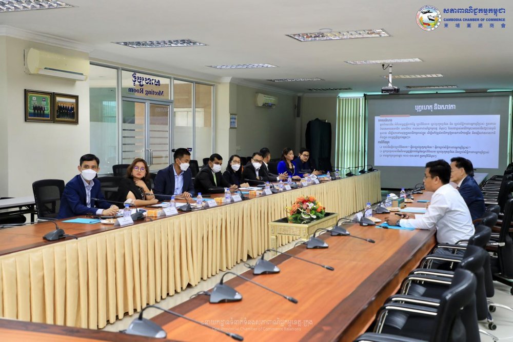 សភាពាណិជ្ជកម្មកម្ពុជា បានសហការជាមួយក្រុមប្រឹក្សាអភិវឌ្ឍន៍កម្ពុជា(CDC) និងក្រសួងពាណិជ្ជកម្ម រៀបចំសិក្ខាសាលាស្ដីពី «ការយល់ដឹងពីការធ្វើអាជីវកម្មរបស់ពាណិជ្ជករកម្ពុជា ដើម្បីកាត់បន្ថយបញ្ហាប្រឈមផ្លូវច្បាប់» ដើម្បីផ្សព្វផ្សាយច្បាប់បញ្ញត្តិថ្មីៗជូនសមាជិក សមាជិកាសភាពាណិជ្ជកម្ម ពាណិជ្ជករ និងអាជីវករនៅតាមបណ្តាខេត្ត ដែលមានការិយាល័យសភាពាណិជ្ជកម្មបានយល់ដឹងបន្ថែមនូវចំណេះដឹង អំពីបទប្បញ្ញត្តិពាក់ព័ន្ធច្បាប់វិនិយោគ ច្បាប់ប្រកួតប្រជែង និងច្បាប់សិទ្ឋិការពារអ្នកប្រើប្រាស់ក្នុងគោលបំណងអោយសមាជិក សមាជិកា របស់សភាពាណិជ្ជកម្មខេត្តនីមួយៗ ដែលជាម្ចាស់អាជីវកម្មបានយល់ដឹងឱ្យបានកាន់តែទូលំទូលាយ ដើម្បីយកទៅអនុវត្តក្នុងអាជីវកម្មរបស់ខ្លួន និងអភិវឌ្ឍន៍អាជីវកម្មឱ្យមានភាពរីកចម្រើន រួមទាំងជៀសវាងមានហានិភ័យក្នុង បទប្បញ្ញត្តិច្បាប់ផ្សេងៗ។