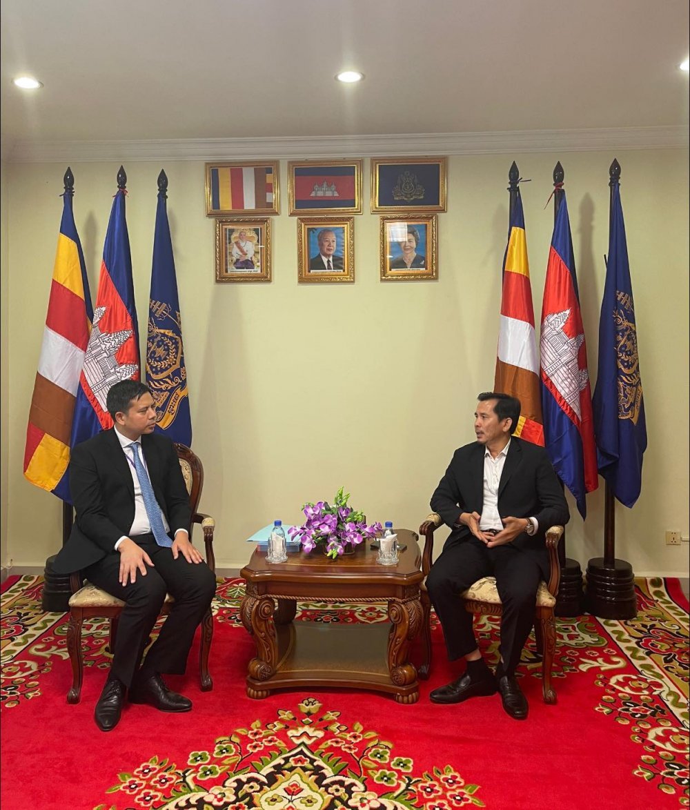 នៅរសៀលថ្ងៃព្រហស្បតិ៍ ២ រោច ខែជេស្ឋ ឆ្នាំខាល ចត្វាស័ក ពុទ្ធសករាជ ២៥៦៦ ត្រូវនឹងថ្ងៃទី១៦ ខែមិថុនា ឆ្នាំ២០២២ ឯកឧត្តមបណ្ឌិត តាន់ មុនីវណ្ណ អនុប្រធានសភាពាណិជ្ជកម្មកម្ពុជា តំណាងអ្នកឧកញ៉ា គិត ម៉េង ប្រធានសភាពាណិជ្ជកម្មកម្ពុជា បានទទួលជួបលោក នីរៈវ៉ាត់ វង្ស៊ីកានចានៈ អគ្គទីប្រឹក្សាផ្នែកពាណិជ្ជកម្មនៃអគ្គនាយកដ្ឋានជំរុញពាណិជ្ជកម្មអន្តរជាតិនៃក្រសួងពាណិជ្ជកម្មថៃ (DITP) ចូលជួបសម្តែងការគួរសម្យ និងពិភក្សាការងារ។