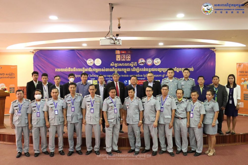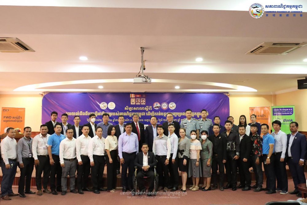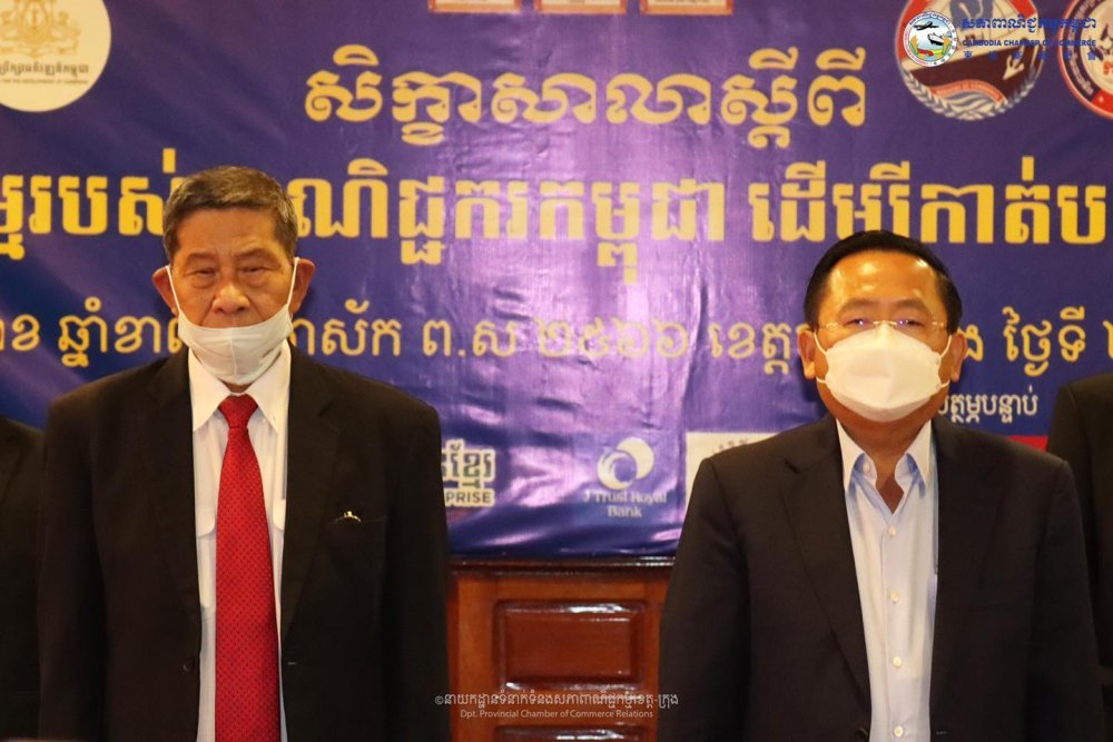 (បាត់ដំបង)៖នៅព្រឹកថ្ងៃពុធ ១០ រោច ខែពិសាខ ឆ្នាំខាល ចត្វាស័ក ព.ស. ២៥៦៦ ត្រូវនឹងថ្ងៃទី២៥ ខែឧសភា ឆ្នាំ២០២២ ឯកឧត្តម ម៉ៅ ថូរ៉ា រដ្ឋលេខាធិការក្រសួងពាណិជ្ជកម្ម ឯកឧត្តម សុខ លូ អភិបាលនៃគណៈអភិបាលខេត្តបាត់ដំបង បានអញ្ជើញជាគណៈអធិបតីក្នុងសិក្ខាសាលាស្តីពី«ការយល់ដឹងពីការធ្វើអាជីវកម្មរបស់ពាណិជ្ជករកម្ពុជា ដើម្បីកាត់បន្ថយបញ្ហាប្រឈមផ្នែកផ្លូវច្បាប់» នៅសណ្ឋាគារស្ទឹងសង្កែ ដោយមានការអញ្ជើញចូលរួមពី លោក ស៊ិន ស៊ីដេត អគ្កនាយករង នៃអគ្គនាយកដ្ឋានកិច្ចការពារអ្នកប្រើប្រាស់ កិច្ចការប្រកួតប្រជែង និងបង្ក្រាបការក្លែងបន្លំ នៃក្រសួងពាណិជ្ជកម្ម ឧកញ៉ា ភួ វាសនា អនុប្រធានសភាពាណិជ្ជកម្មកម្ពុជា និងជាប្រធានសភាពាណិជ្ជកម្មខេត្តបាត់ដំបង លោក ហេង ប៊ុនហុង មន្ត្រីនាយកដ្ឋានទំនាក់ ទំនងសាធារណៈ និងជំរុញគម្រោងវិនិយោគឯកជននៃក្រុមប្រឹក្សាអភិវឌ្ឍន៍កម្ពុជា(CDC) ឯកឧត្តម លោក លោកស្រី ប្រតិភូក្រសួងពាណិជ្ជកម្ម មន្ទីរ អង្គភាពជុំវិញខេត្ត សមាជិក សមាជិកា សភាពាណិជ្ជកម្មខេត្តបាត់ដំបង ពាណិជ្ជករ អាជីវករប្រមាណ១៧០នាក់ ដែលអង្គសិក្ខាសាលានេះសហការរៀបចំដោយសភាពាណិជ្ជកម្មកម្ពុជា ក្រុមប្រឹក្សាអភិវឌ្ឍន៍កម្ពុជា(CDC) និងក្រសួងពាណិជ្ជកម្ម គាំទ្រដោយរដ្ឋបាលខេត្ត និងសភាពាណិជ្ជកម្មសភាពាណិជ្ជកម្មខេត្តបាត់ដំបង និងទទួលបានការឧបត្ថម្ភពី ក្រុមហ៊ុនធានារ៉ាប់រងអាយុជីវិត FWD Cambodia ,ធនាគារ វីង (ខេមបូឌា) ម.ក. ,ធនាគារ ព្រីនស៍ ម.ក,សហគ្រិនខ្មែរ,ធនាគារ ជេ ត្រាស់ រ៉ូយ៉ាល់ ម.ក ,កំពង់ផែស្វយ័តភ្នំពេញ ក្រុមហ៊ុន ភួ ពុយ អ៊ិនវេសមិន ខូ អិល ធី ឌី ក្រុមហ៊ុន ប៉ៃតងកម្ពុជា និងធនាគារកាណាឌីយ៉ា។